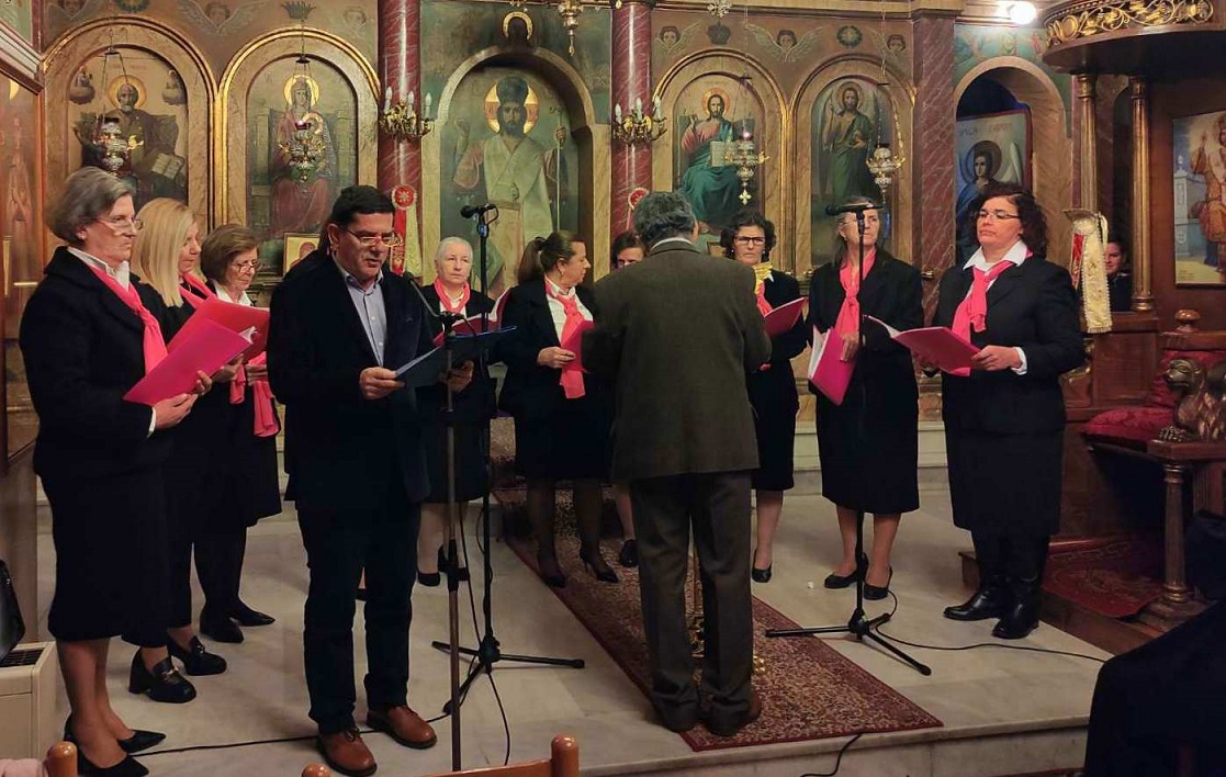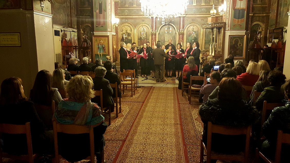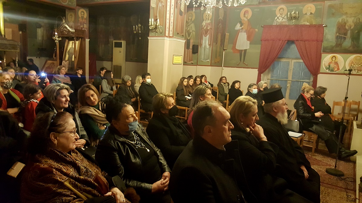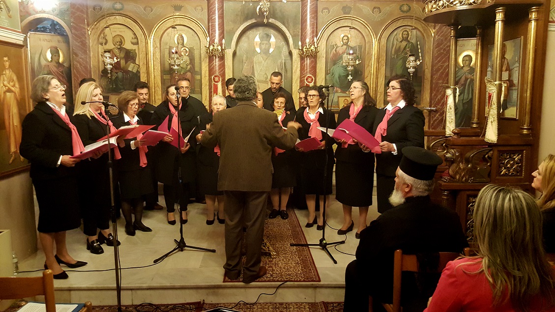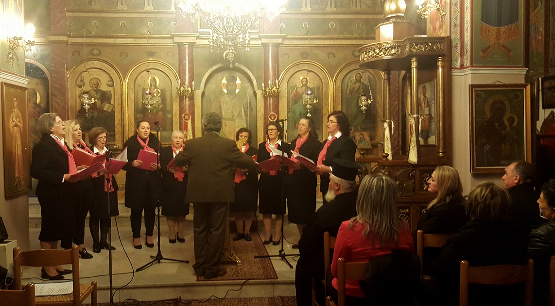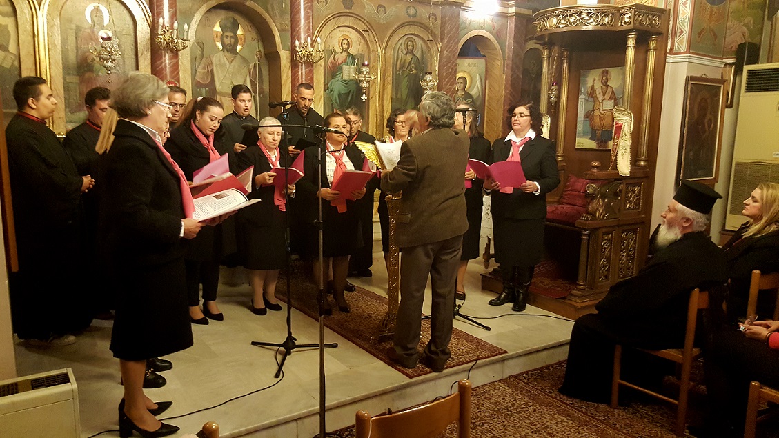 Η Χορωδία Γυναικών Καλυβίων μαζί με τους Ιεροψάλτες τραγούδησαν τα ποιήματα: Προσευχή, Αη Νικόλα μου Προστάτη και Κάπου σε μια χώρα μακρινή.