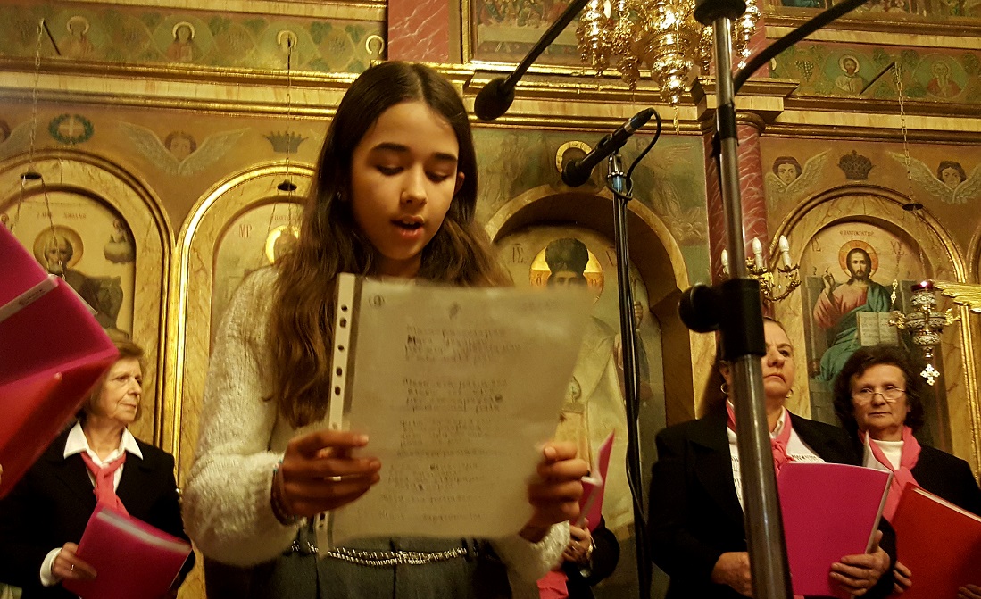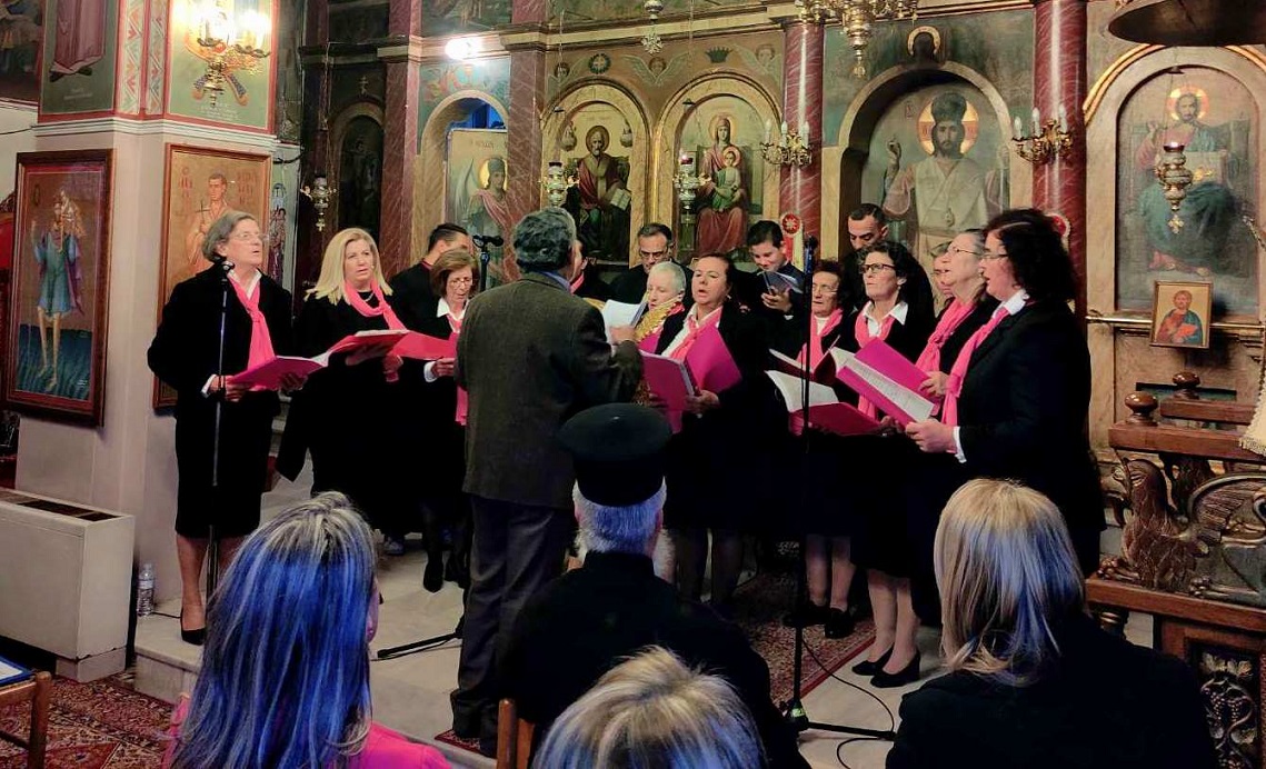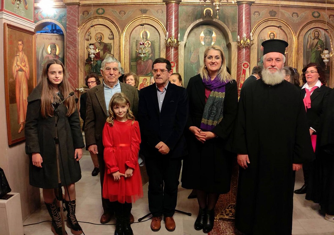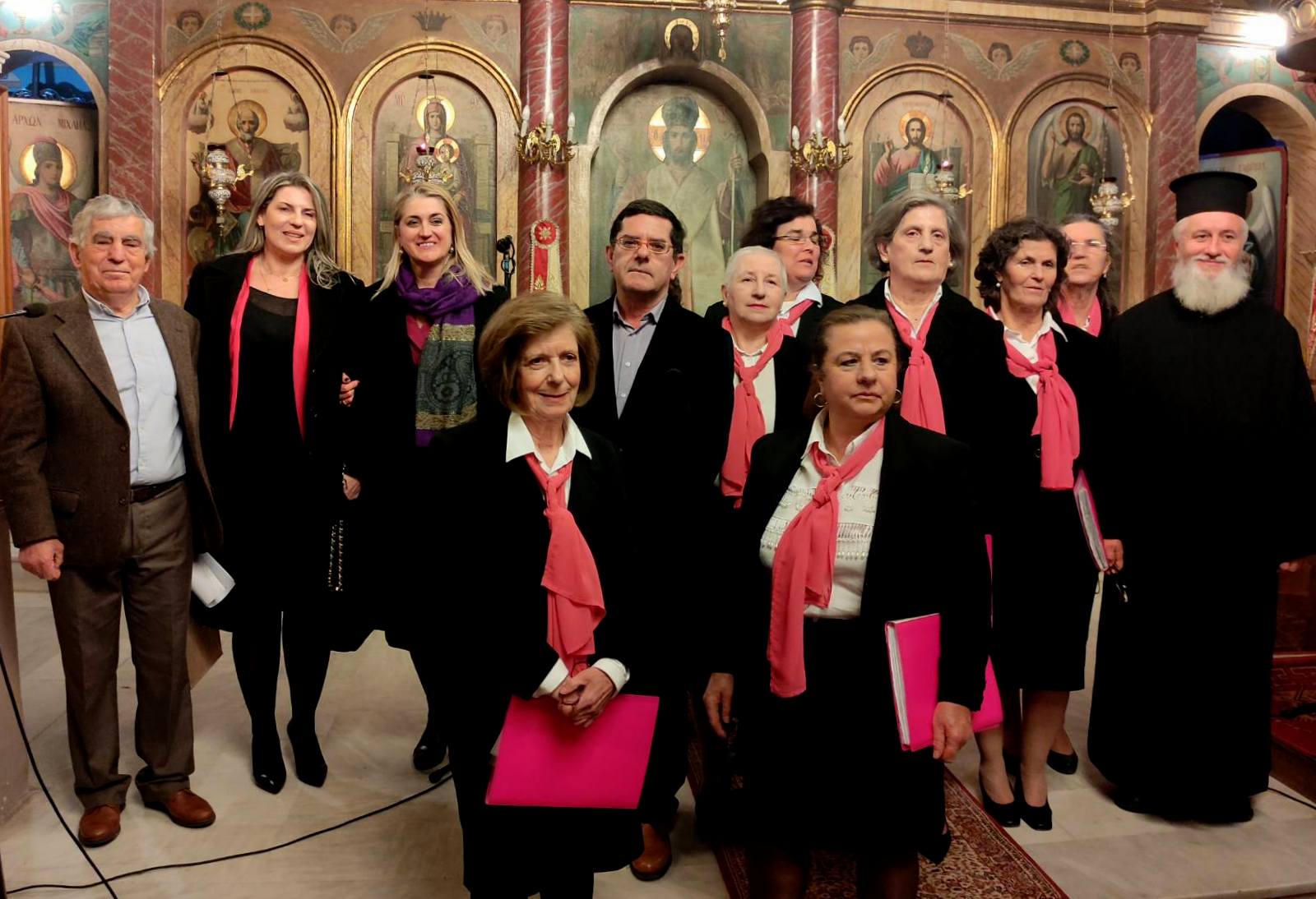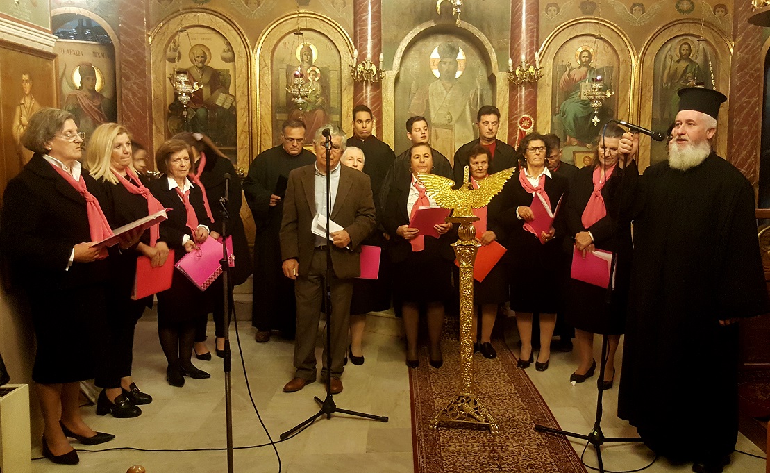 Η Χορωδία Γυναικών Καλυβίων μαζί με τους Ιεροψάλτες τραγούδησαν τα ποιήματα: Προσευχή, Αη Νικόλα μου Προστάτη και Κάπου σε μια χώρα μακρινή.