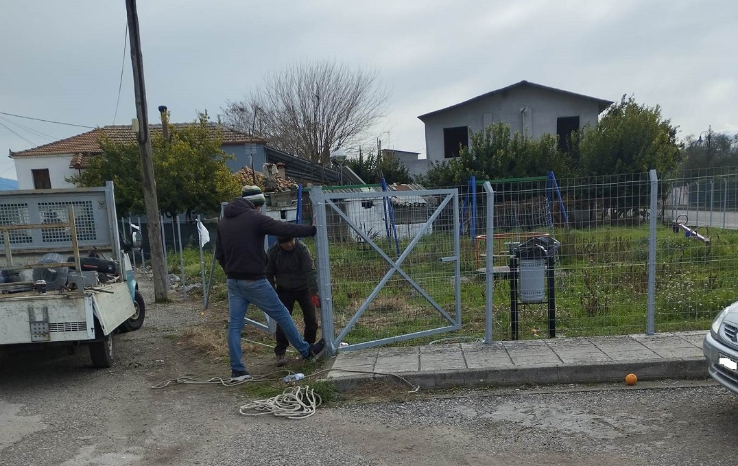 Συγκεκριμένα τοποθετήθηκε η μεταλλική πόρτα και αποκαταστάθηκε με πλέγμα η ζημιά στην περίφραξη της Παιδικής Χαράς, κόπηκαν τα αγριόχορτα, όπως επίσης ανάλογες εργασίες έγιναν στους προαύλιους χώρους του Γυμνασίου, του Δημοτικού Σχολείου, του Νηπιαγωγείου Καλυβίων, της κεντρικής πλατείας και του οικοπέδου της εκκλησίας του χωριού μας.
