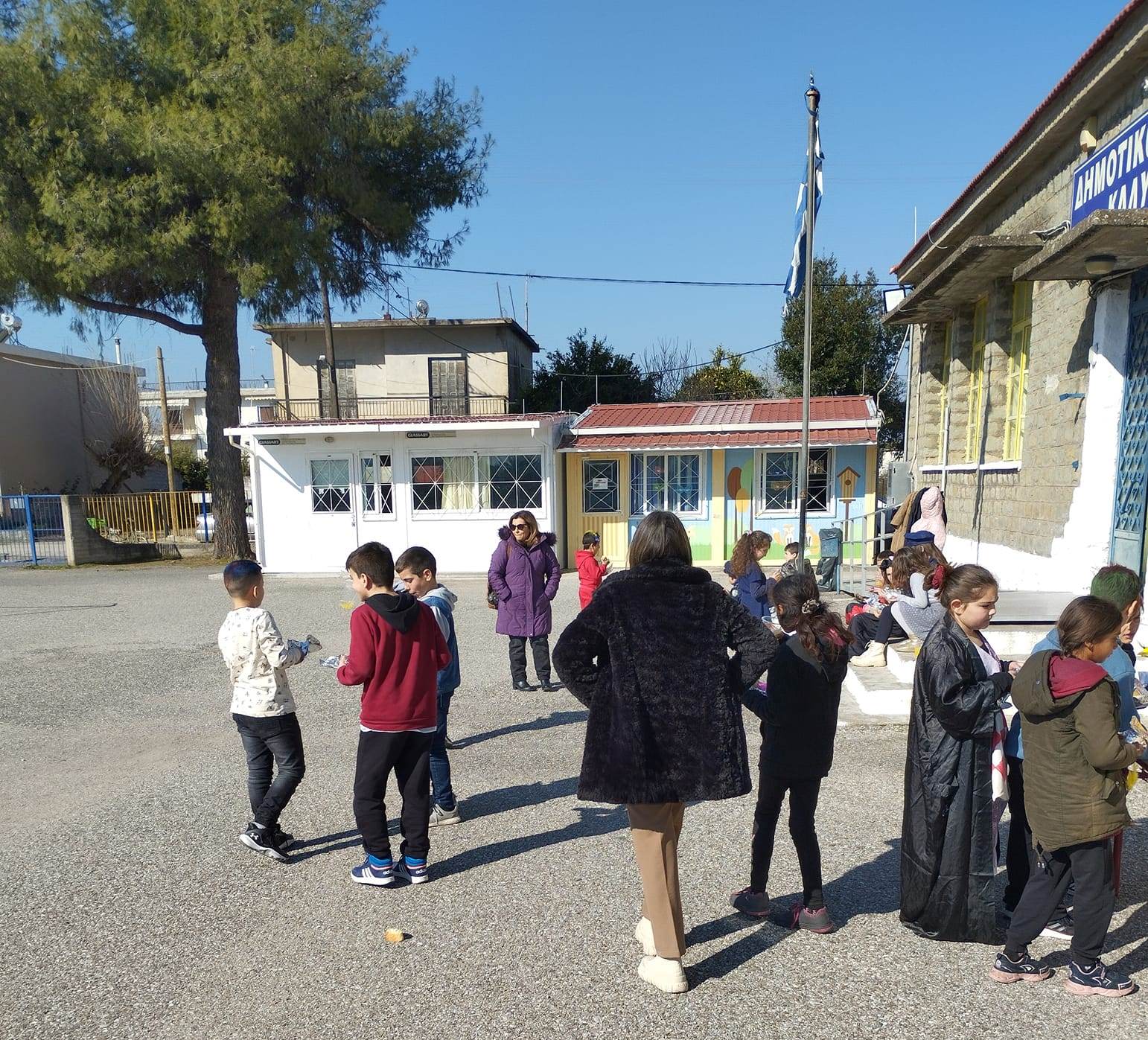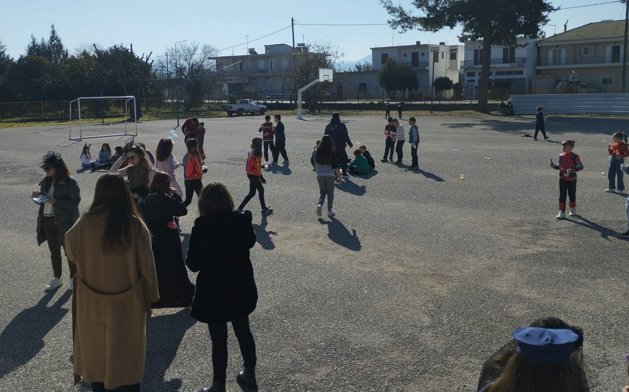Οι μαθητές και οι μαθήτριες του Δημοτικού Σχολείου παρουσίασαν το «γαϊτανάκι» ενώ στη συνέχεια δοκίμασαν τα εδέσματα και τα σουβλάκια που έψησαν εθελοντές γονείς, ενώ μικροί και μεγάλοι διασκέδασαν υπό τους ήχους αποκριάτικης μουσικής και τραγουδιών.