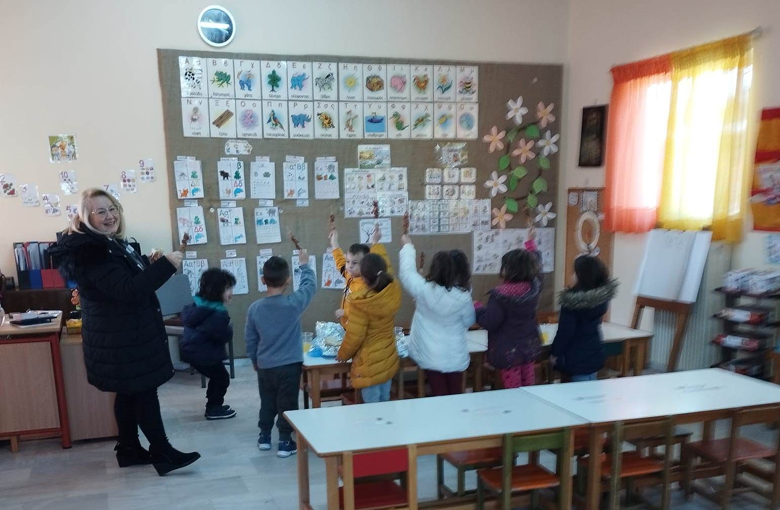 Επίσης, μικρή γιορτή πραγματοποιήθηκε και στο Νηπιαγωγείο Καλυβίων, όπου οι μικροί μαθητές γεύτηκαν εδέσματα και χυμούς, και χόρεψαν με αποκριάτικους ρυθμούς. Η Διευθύντρια του Νηπιαγωγείου κα Γιούλα Αυγέρη ευχαρίστησε την Κοινότητα Καλυβίων για την προσφορά της.