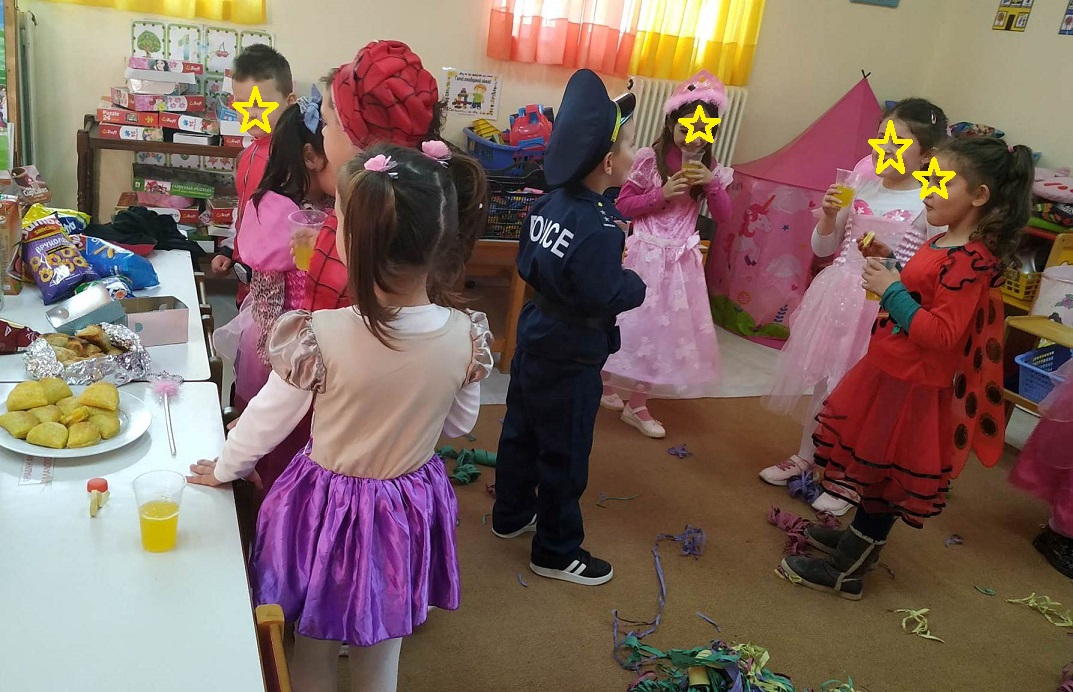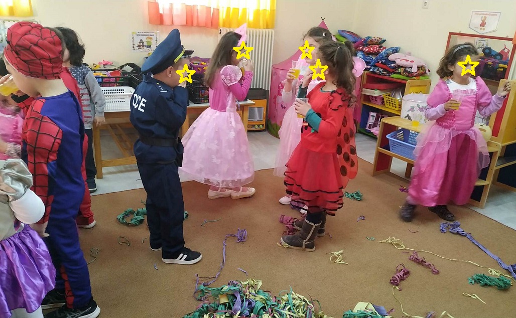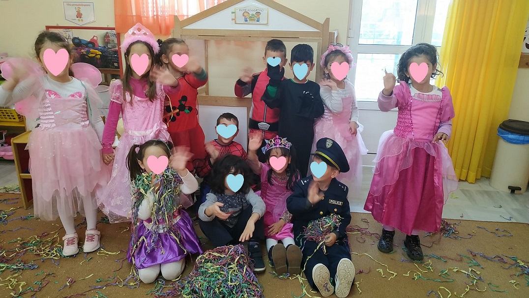 Μικρές πριγκίπισσες, βασίλισσες του χιονιού, πεταλούδες, χορεύτριες, αστυνομικοί, σπάιντερμαν, χόρεψαν, έριξαν σερπαντίνες και χαρτοπόλεμο, δοκίμασαν τις λιχουδιές, και τα αναψυκτικά και χόρεψαν μαζί με τη δασκάλα τους κα Γιούλα Αυγέρη, με αποκριάτικους χορούς!