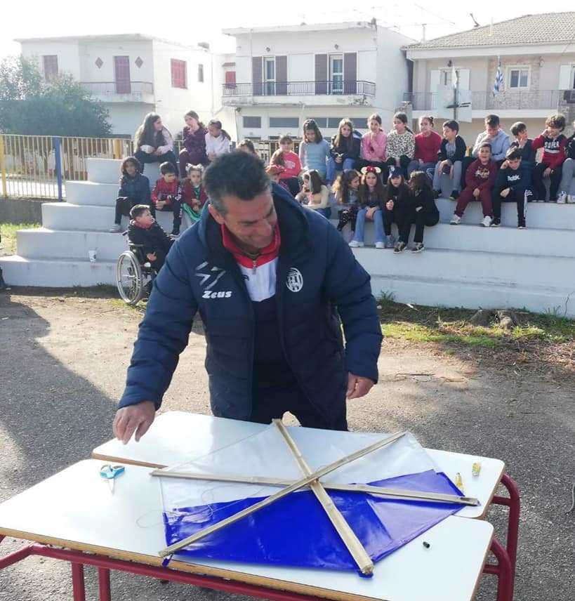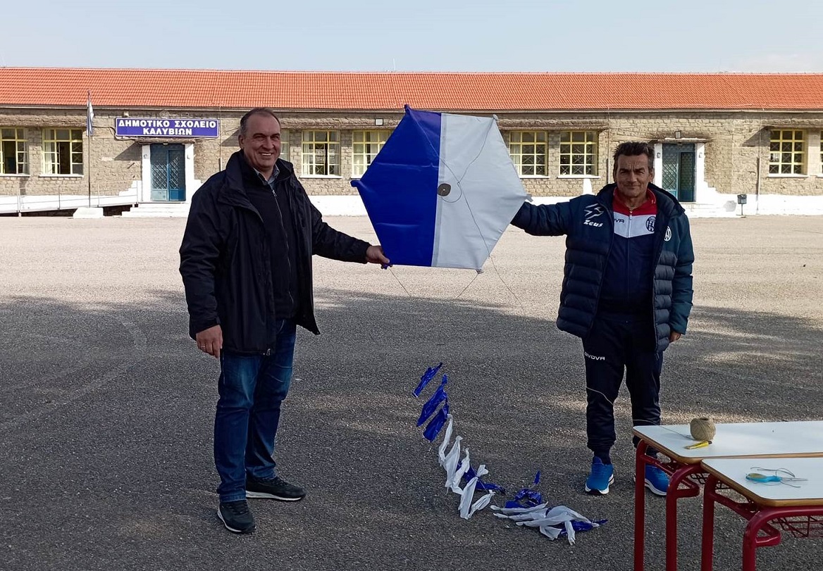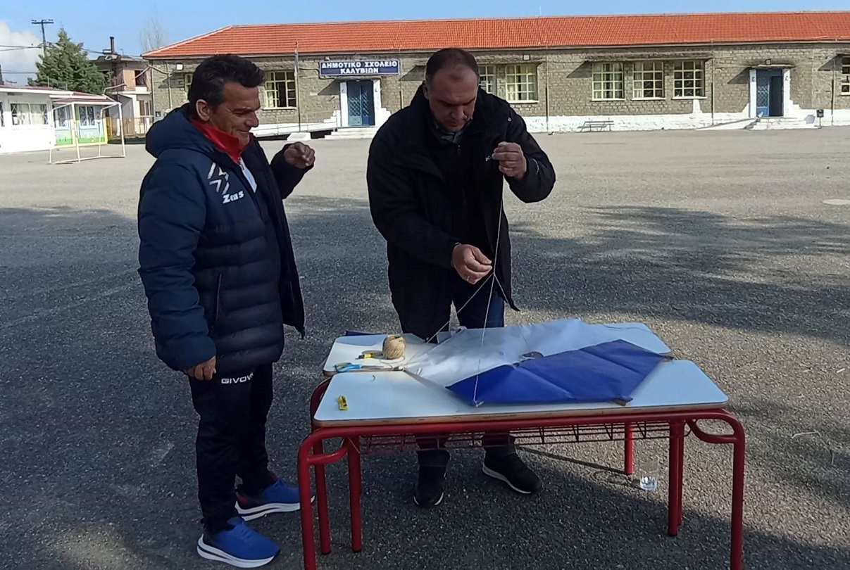 Ένα παραδοσιακό έθιμο, η κατασκευή χαρταετού, αναβίωσε σήμερα στο Δημοτικό Σχολείο Καλυβίων Αγρινίου, με τους μικρούς μαθητές να μαθαίνουν την ¨τεχνική¨ και τα υλικά που χρησιμοποιούνται για να ετοιμαστεί ο αετός.