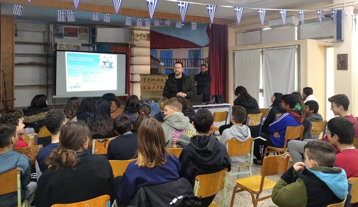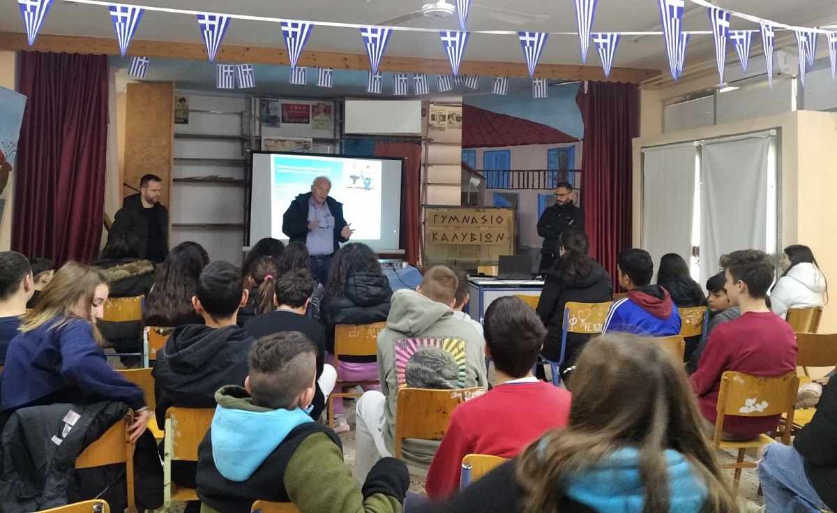 Σε εκδήλωση που έγινε σήμερα, οι μαθητές του Γυμνασίου Καλυβίων Αγρινίου ενημερώθηκαν για την ασφαλή πλοήγηση στο διαδίκτυο, από αξιωματικούς της Αστυνομικής Διεύθυνσης Ακαρνανίας, οι οποίοι παρέστησαν κατόπιν σχετικής πρόσκλησης της διεύθυνσης του σχολείου και στα πλαίσια των εκπαιδευτικών δράσεών του.