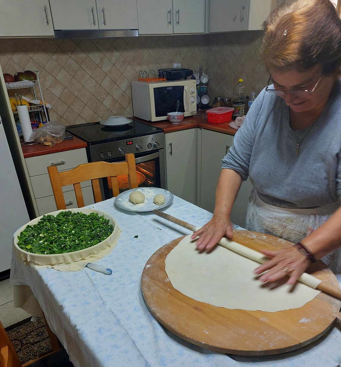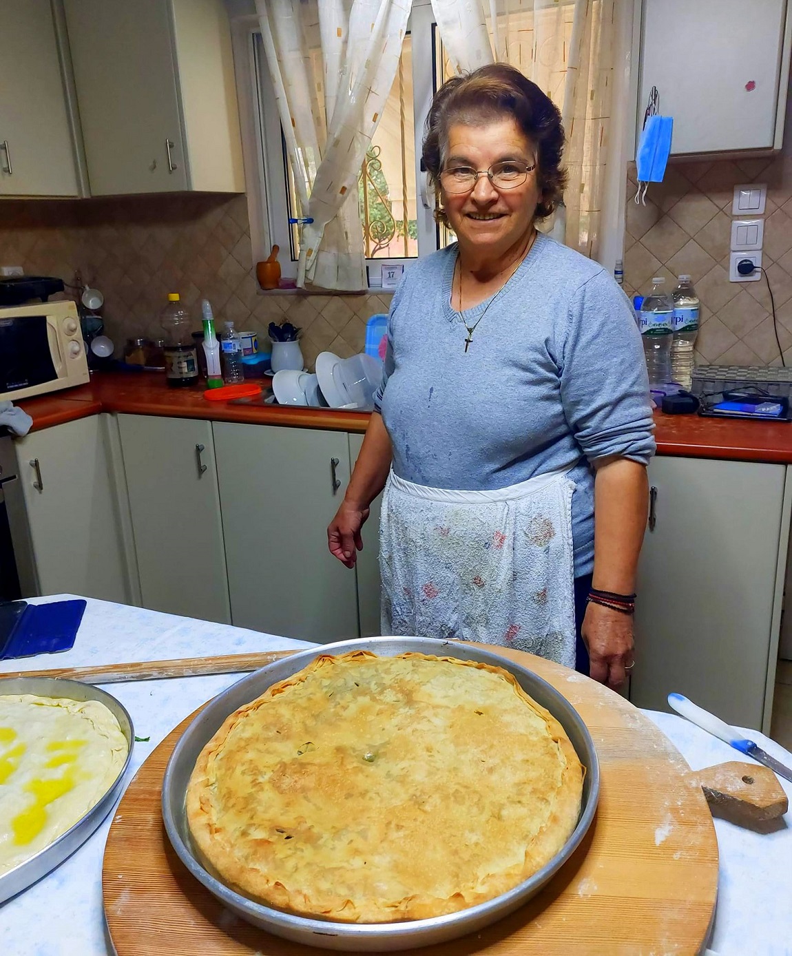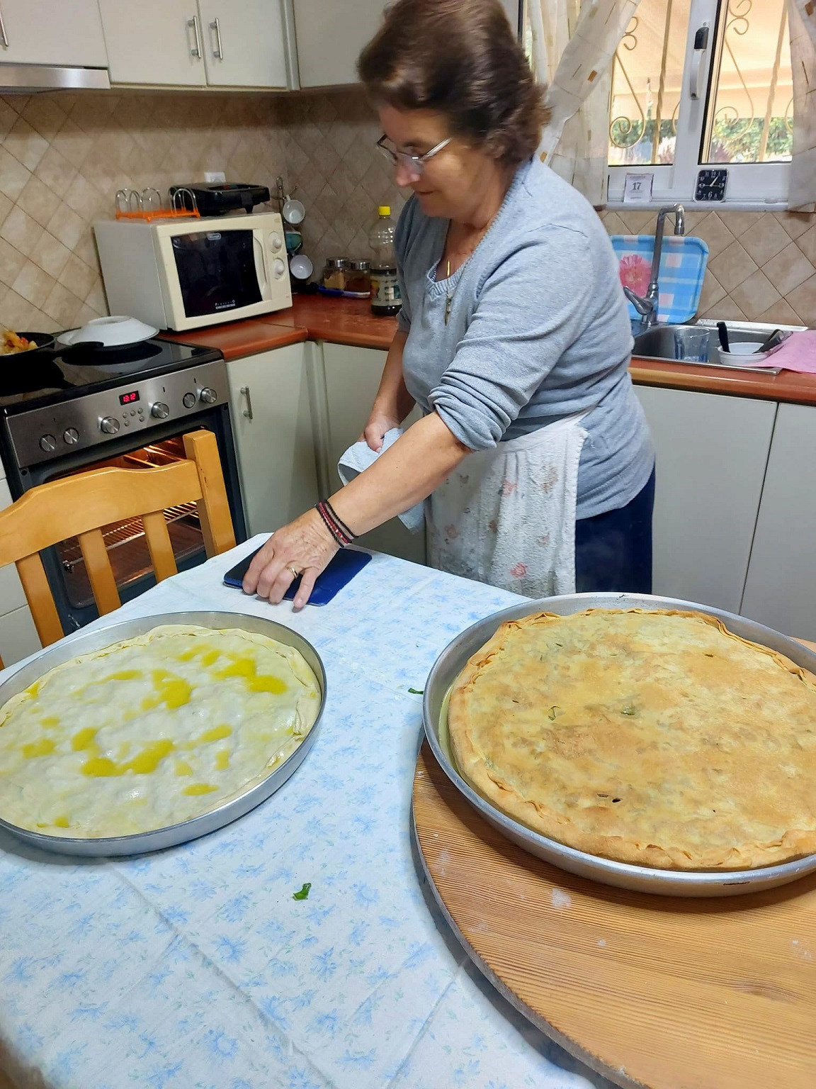 Το αποτέλεσμα σίγουρα θα είναι το ίδιο ωραίο, μας λέει η κυρία Κωνσταντούλα Κερασιώτη και με περίσσεια υπερηφάνεια μας δείχνει τα ταψιά με τις χορτόπιτες που ετοίμασε στο σπιτικό της… Καλή όρεξη!