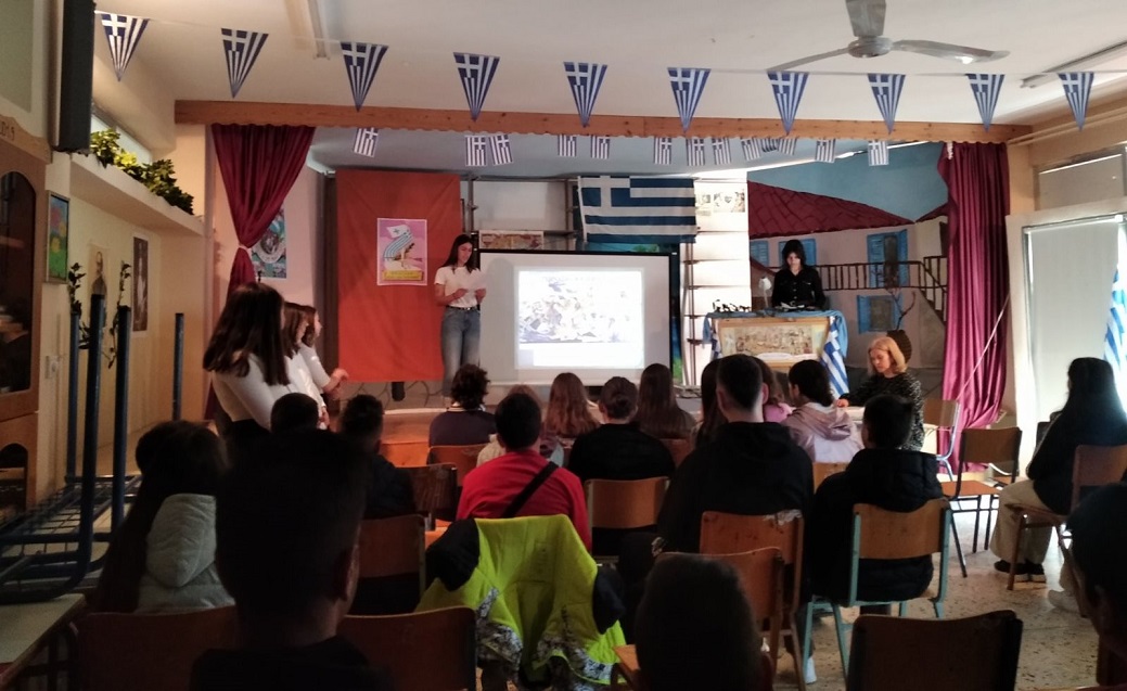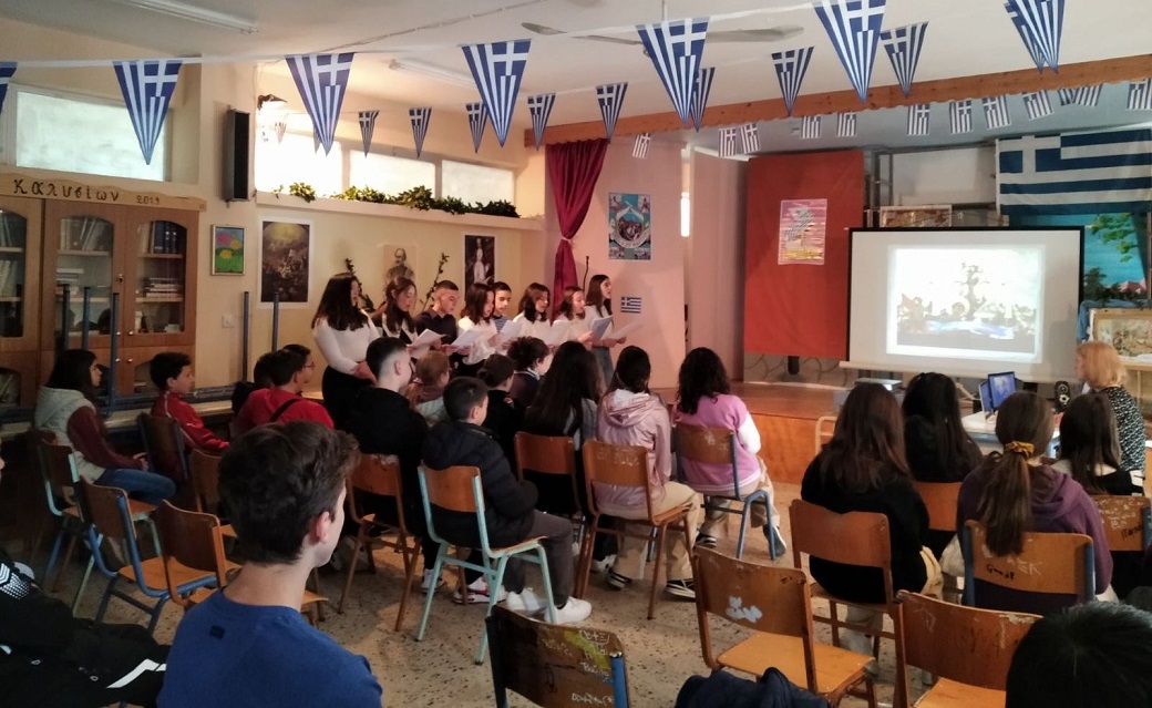 Η σχολική γιορτή για την Εθνική Επέτειο της ¨25ης Μαρτίου 1821¨ και τον Ευαγγελισμό της Θεοτόκου, πραγματοποιήθηκε το πρωί στην αίθουσα εκδηλώσεων του Γυμνασίου Καλυβίων, με την παρουσία εκπαιδευτικών και μαθητών.