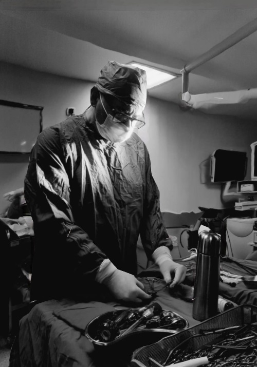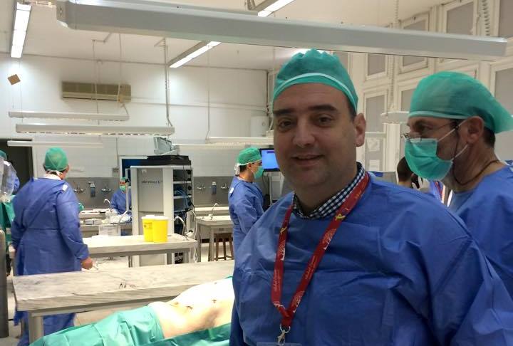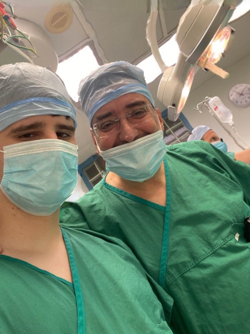 Σε ώρες εκπαίδευσης, μαζί με τον γιο του Ηλία, στον εσωτερικό χώρο χειρουργείου