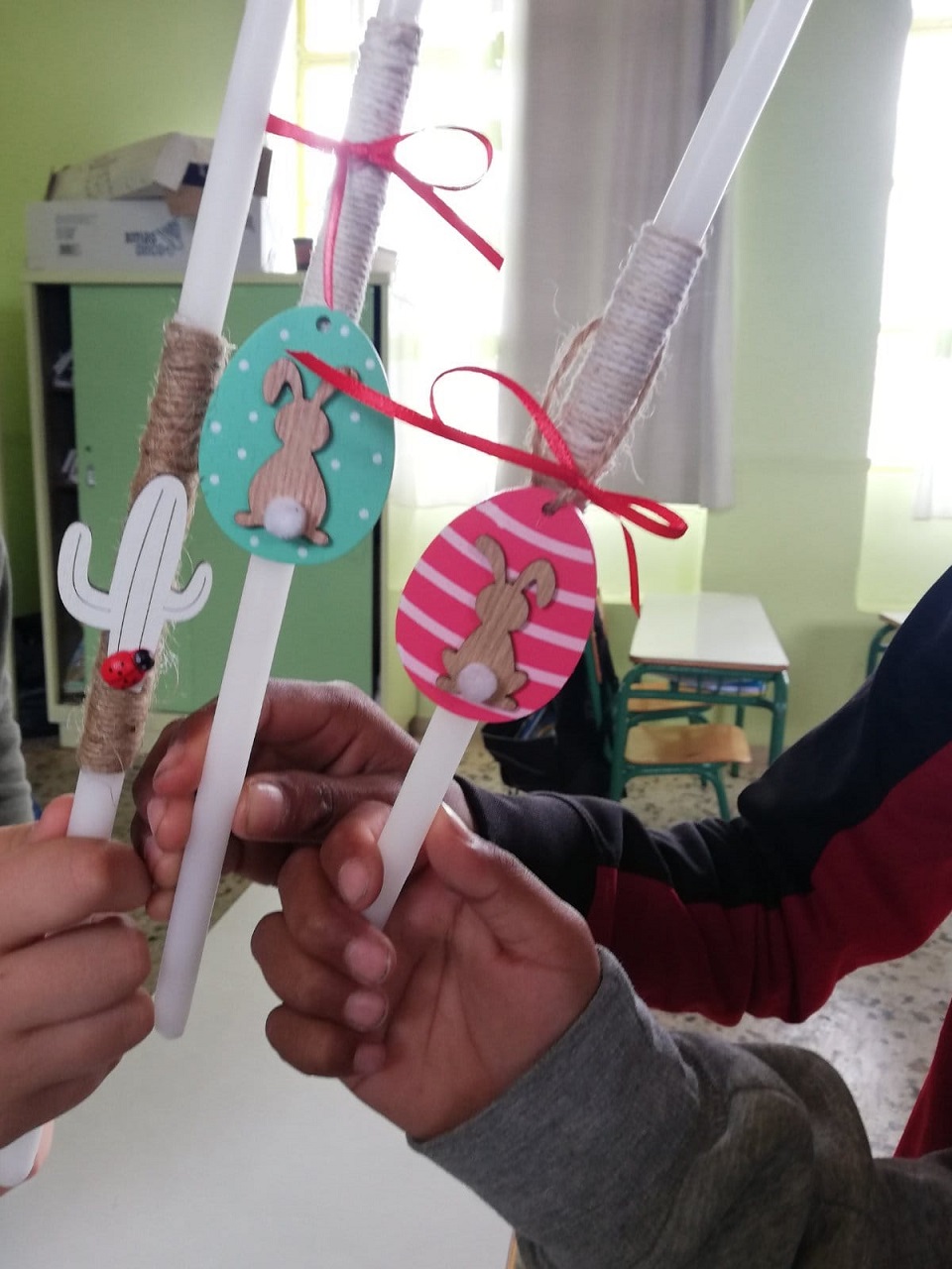Ένα από τα έθιμα που υπάρχει στην πατρίδα μας για το Πάσχα, είναι η πασχαλινή λαμπάδα την οποία την παίρνουμε το Σάββατο το βράδυ στην Ανάσταση για να την ανάψουμε και να πάρουμε το Άγιο Φως. Στο Δημοτικό Σχολείο Καλυβίων τα παιδιά έφτιαξαν τις δικές τους χειροποίητες λαμπάδες!