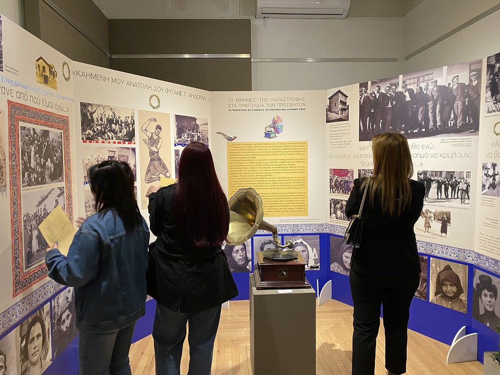 Βασικοί άξονες έκθεσης είναι η ζωή πριν το 1922 στη Σμύρνη, την Ιωνία, την Καππαδοκία, τον Πόντο, την Κωνσταντινούπολη και την Προποντίδα, την Ανατολική και τη Βόρεια Θράκη (Ανατολική Ρωμυλία)· η Έξοδος, η απώλεια και το τραύμα της προσφυγιάς· η ζωή και η μουσική δημιουργία στη νέα πατρίδα· ο τρόπος με τον οποίο οι δικές μας γενιές τραγούδησαν το συνταρακτικό γεγονός και την προσφυγιά. Τα παραπάνω συνδέονται μεταξύ τους με βασικό άξονα τη μουσική και το τραγούδι, που δημιουργούν τον γενικό καμβά της έκθεσης.