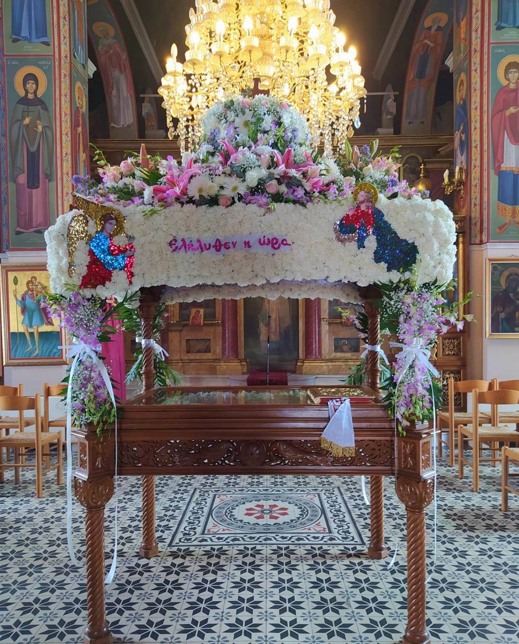 Και ενώ μέχρι και την Ακολουθία των Ωρών επικρατεί ο πένθιμος διάκοσμος του Ναού και των αμφίων των Ιερέων, ωστόσο, από τον Εσπερινό και μετά, το χρώμα από πένθιμο αλλάζει σε λευκό. Φορώντας, λοιπόν, ο Ιερέας λευκά άμφια, τη Μεγάλη Παρασκευή αποκαθηλώνει το Σώμα του Κυρίου από τον Σταυρό, τυλιγμένο με λευκό σεντόνι, και το εναποθέτει στο στολισμένο κουβούκλιο του επιταφίου, το οποίο έχει ήδη τοποθετηθεί στο κέντρο του Ναού.