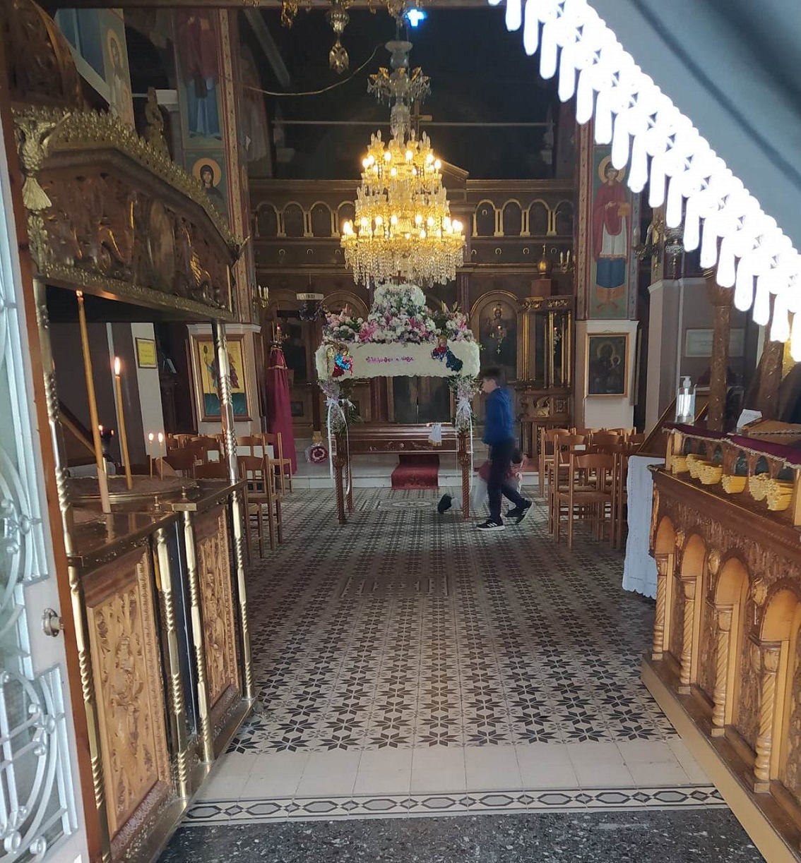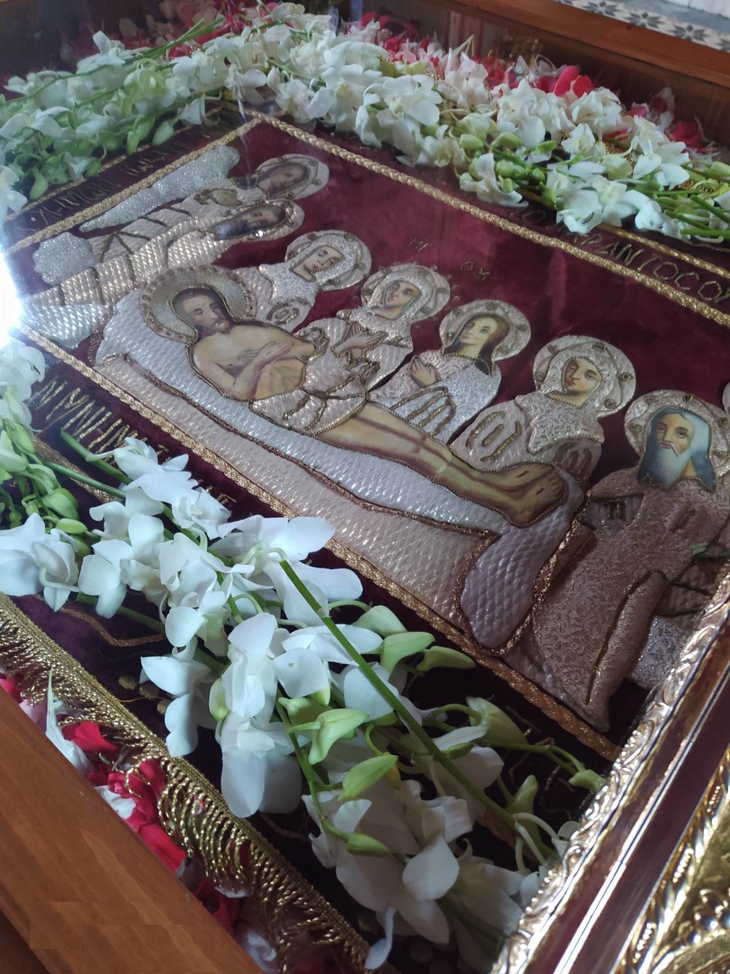 Ακολούθως, τοποθετείται από τον ιερέα στο Ιερό Κουβούκλιο το ύφασμα, πάνω στο οποίο έχει κεντηθεί ο Κύριος, νεκρός... Ο Επιτάφιος είναι στολισμένος με λουλούδια, ενώ η καμπάνα χτυπάει λυπητερά όλη τη μέρα!