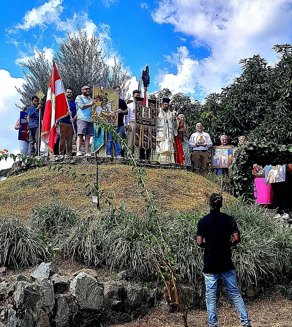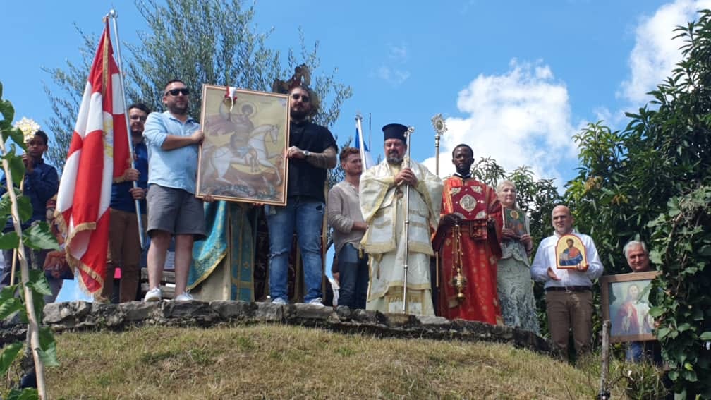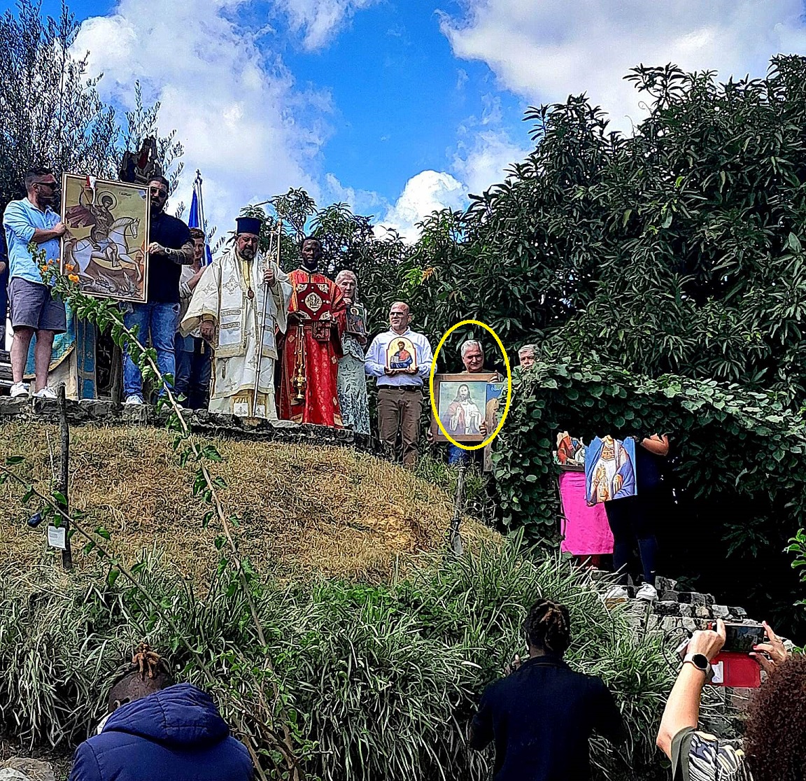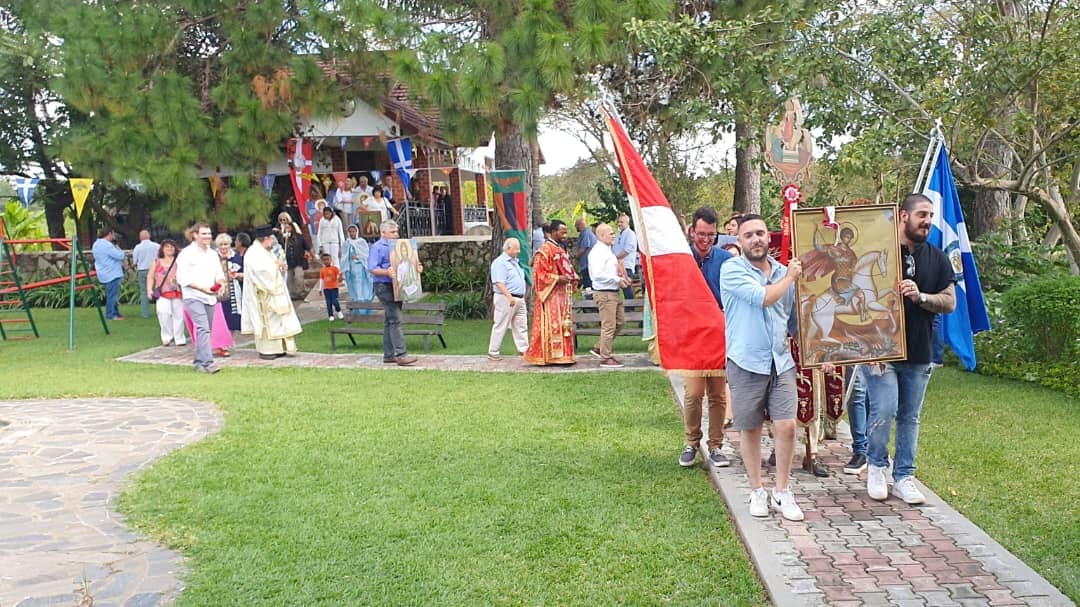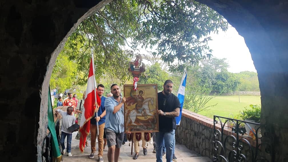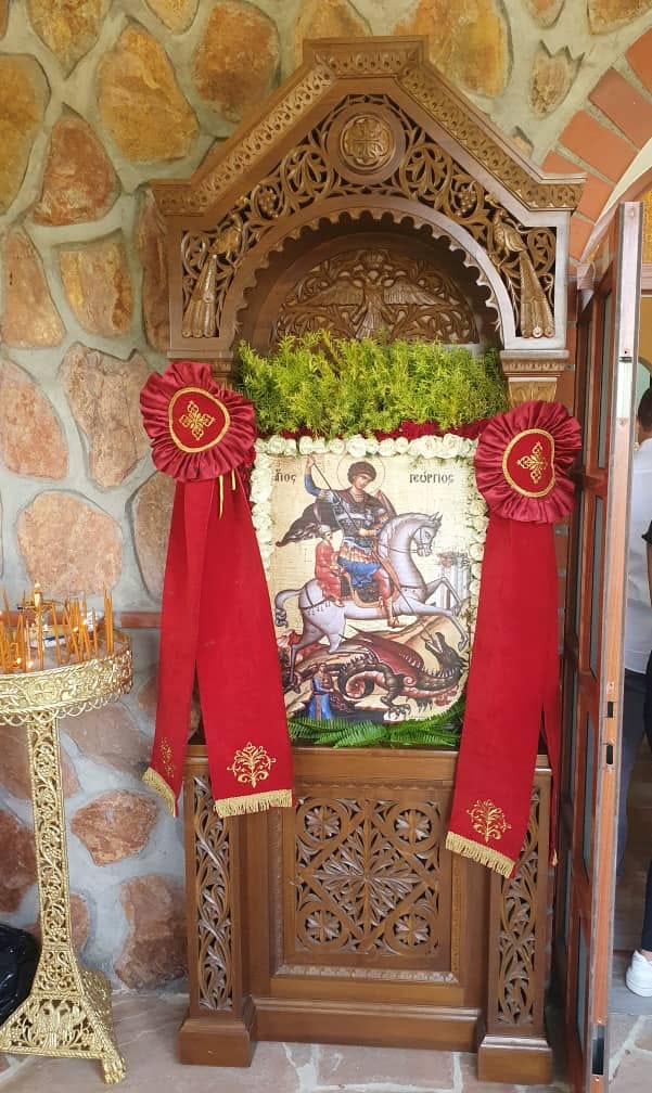 Ακολούθησε η λιτάνευση της Ιεράς Εικόνας του Αγίου Γεωργίου, όπου συμμετείχε και ο συγχωριανός μας Νικόλαος Ι. Ρεπετσάς (καταγωγή από τα Καλύβια Αγρινίου) ο οποίος κρατούσε την εικόνα του Ιησού Χριστού!
