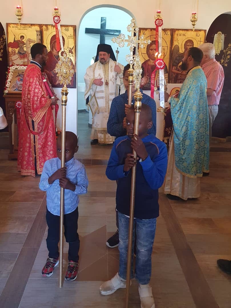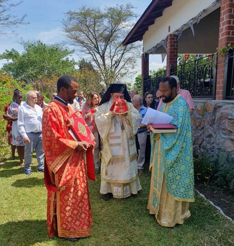 Πριν την Απόλυση της πρώτης Αρχιερατικής Θείας Λειτουργίας, στον νέο-εγκαινιασμένο Ιερό Ναό του Αγίου Γεωργίου, ο Σεβασμιώτατος συνεχάρη τους κτήτορες γιατί ο Ναός είναι ένα κόσμημα- στολίδι πίστεως και πολιτισμού, όχι μόνο για την Ζάμπια, αλλά για όλη την Αφρική.