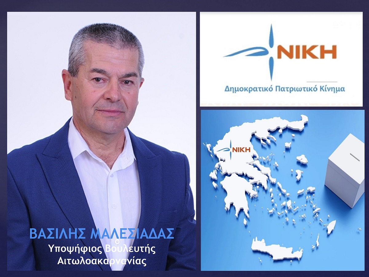 Ο συμπατριώτης μας Βασίλειος Μαλεσιάδας από τον Άγιο Γεώργιο Καλυβίων κατέρχεται στις επικείμενες εθνικές εκλογές της 21ης Μαΐου 2023, ως υποψήφιος βουλευτής Αιτωλοακαρνανίας με το Δημοκρατικό Πατριωτικό Κίνημα "ΝΙΚΗ", ενώ χθες Τρίτη 25 Απριλίου διοργανώθηκε ανοικτή προεκλογική εκδήλωση στο Αγρίνιο.