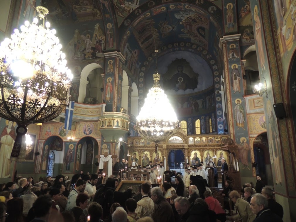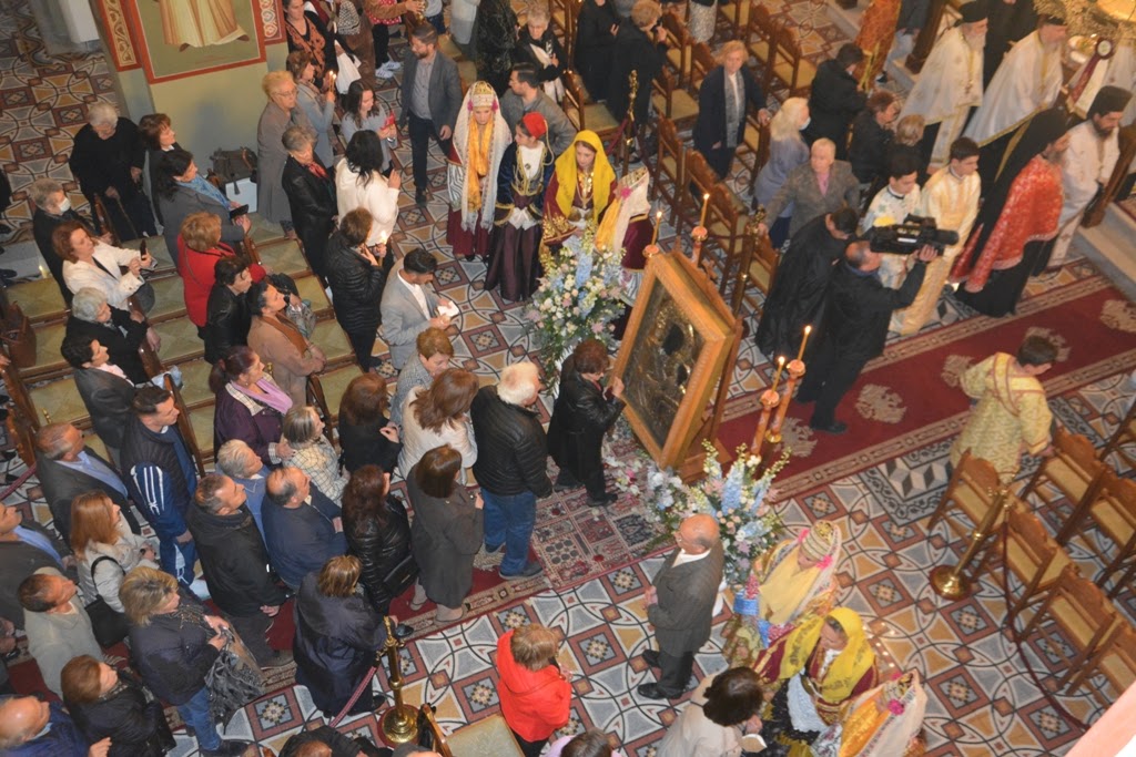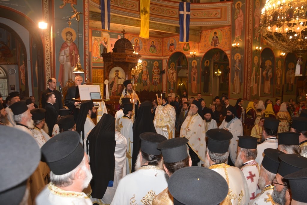 Ακολούθησε Δοξολογία και η ακολουθία του Πανηγυρικού Αρχιερατικού Εσπερινού, χοροστατούντος του Σεβασμιώτατου Ποιμενάρχου μας κ. Δαμασκηνού.