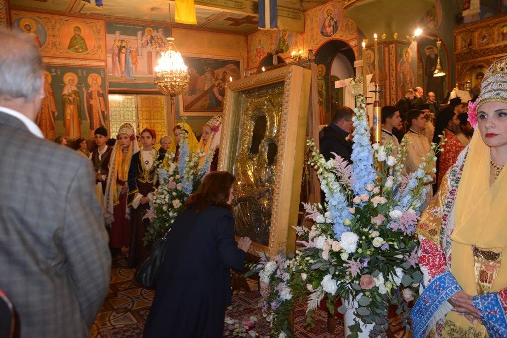 Υποδεχόμαστε, σήμερα, την Παναγία και την ενθρονίζουμε στο κέντρο τούτου του περικαλλούς και καλλιμάρμαρου Ιερού Ναού, για να είναι εκείνη που θα συνεορτάσει μαζί μας, την ιερά μνήμη του προστάτου και πολιούχου μας, Αγίου Χριστοφόρου. Θα είναι η πνευματική Οικοδέσποινα για μια ολόκληρη εβδομάδα. Θα είναι η στοργική Μητέρα, που θα υποδέχεται καθημερινά τα πλήθη των πιστών για να τα φιλοξενήσει στην μητρική της αγκάλη, να τα σκεπάσει με το θεομητορικό της ωμοφόριο, να γίνει η καταφυγή, η μεσιτεία, η πρεσβεία για όλους του πιστούς, αλλά και η γέφυρα, μέσα από την οποία οι προσευχές τους θα ανέλθουν στον ουρανό».