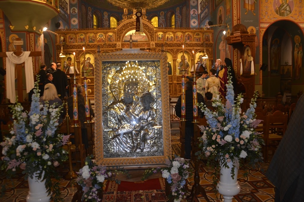 Ο π. Σεραφείμ αναφέρθηκε στην ιστορία της Ιεράς Εικόνας, που χάνεται στα βάθη των αιώνων και οι μαρτυρίες για αυτήν επιβεβαιώνουν μία θαυματουργική διαδρομή, μέσα στο χρόνο και μίλησε για τα πολλά θαύματα και τις ευεργεσίες της Κυρίας Θεοτόκου τονίζοντας ότι: «Όταν η δική σας ευσέβεια σας φέρει μπροστά της, σας παρακαλώ, με ταπείνωση και ευγνωμοσύνη να αντικρύσετε την υπερκόσμια μάτια της. Το χέρι του αγιογράφου που, σύμφωνα με την παράδοση είναι ο Ευαγγελιστής Λουκάς, αξιώθηκε να απεικονίσει τη μητρική τρυφερότητα της Μητέρας όλων των ανθρώπων, αλλά και την ελπίδα, που μόνο αυτή μπορεί να προσφέρει, Αυτή η Μητέρα του Αρχηγού της Ελπίδας και της Σωτηρίας.