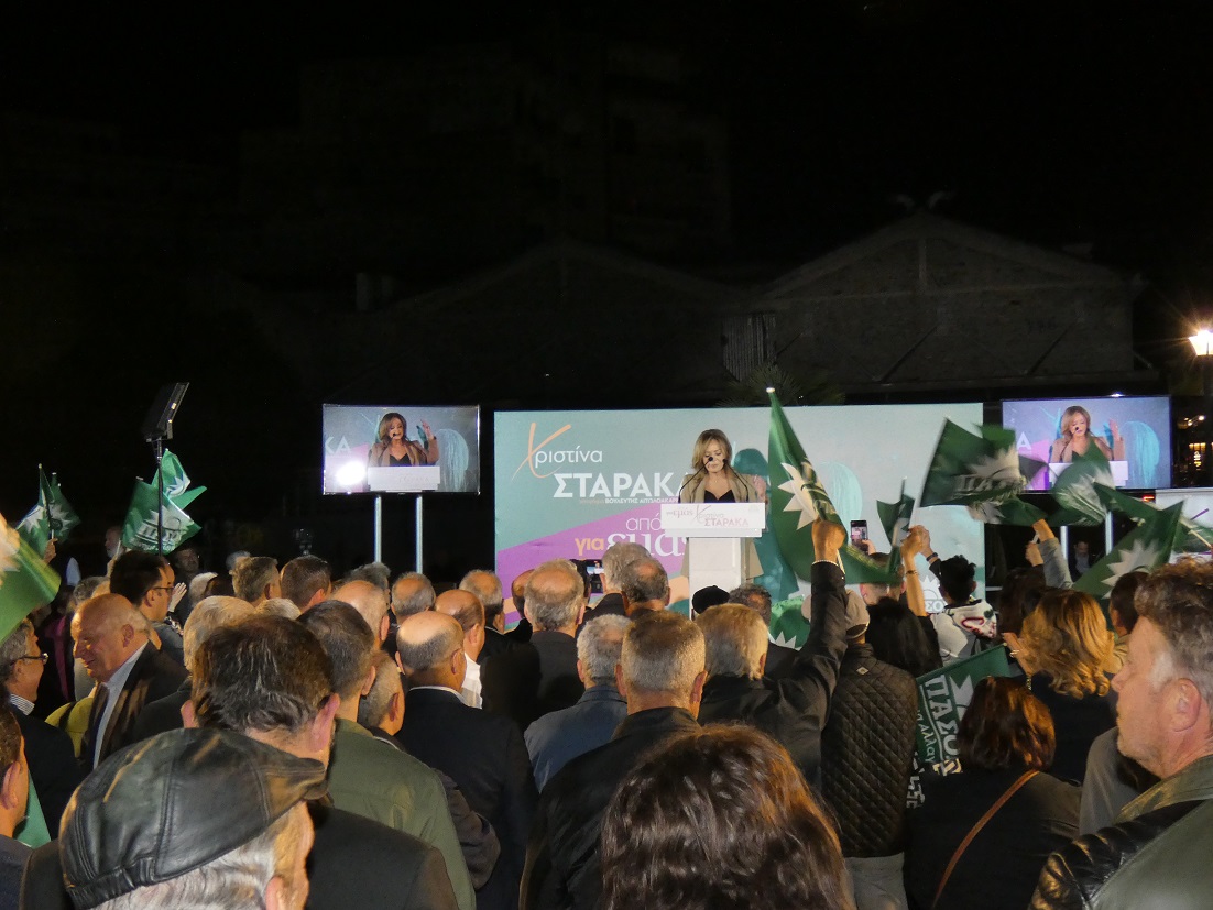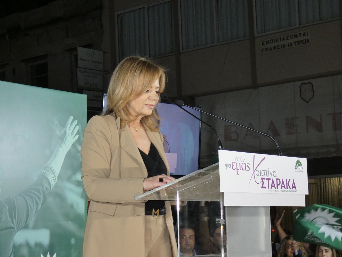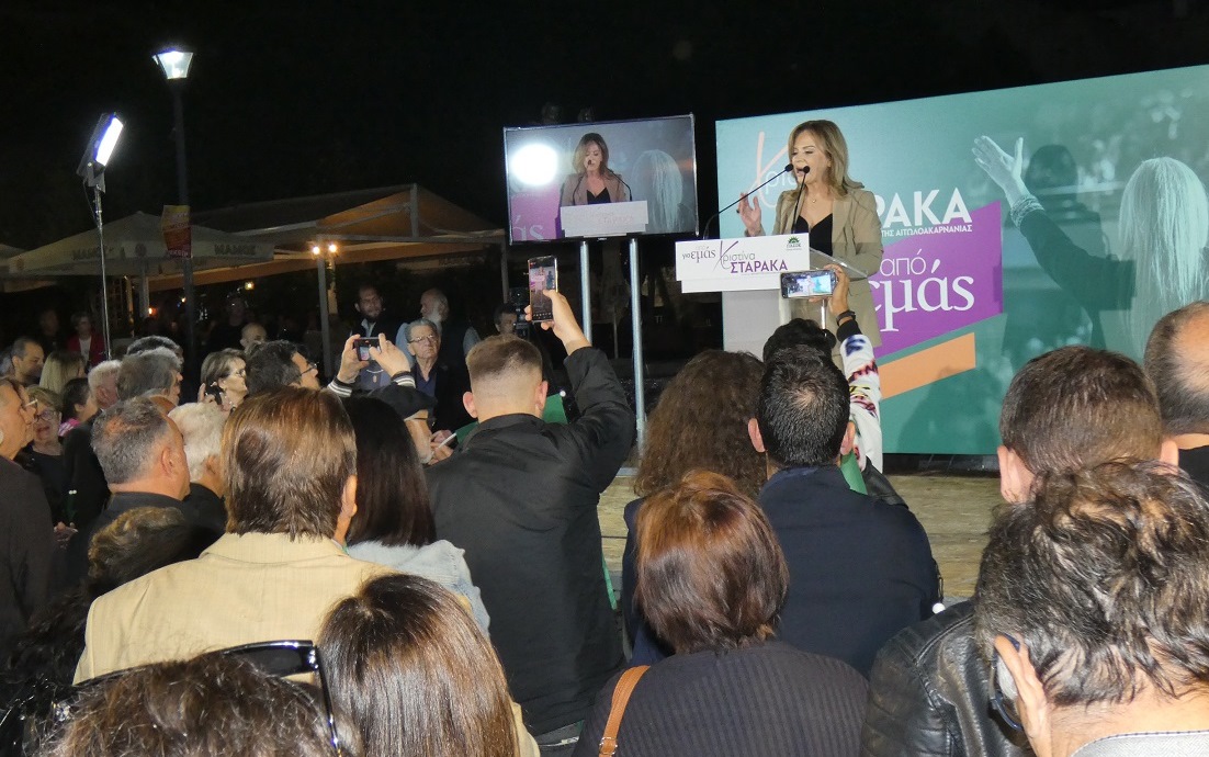 Σε κομβική στιγμή συνολικά για το ΠΑΣΟΚ στην Αιτωλοακαρνανία εξελίχτηκε η τελευταία μεγάλη προεκλογική ομιλία της υποψήφιας βουλευτή Χριστίνας Σταρακά, στο Αγρίνιο, μιας και για πρώτη φορά υποψήφιος του κόμματος πραγματοποίησε ανοιχτή συγκέντρωση σε πλατεία μετά από πολλά χρόνια. Οι πολίτες του Αγρινίου "πλημμύρισαν" την πλατεία Δημάδη, ανταποκρινόμενοι στο κάλεσμα της Χριστίνας Σταρακά, την υποψήφια του ΠΑΣΟΚ, την οποία υποδέχτηκαν με ενθουσιασμό.