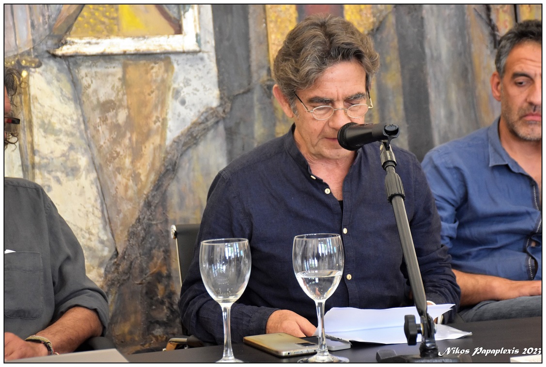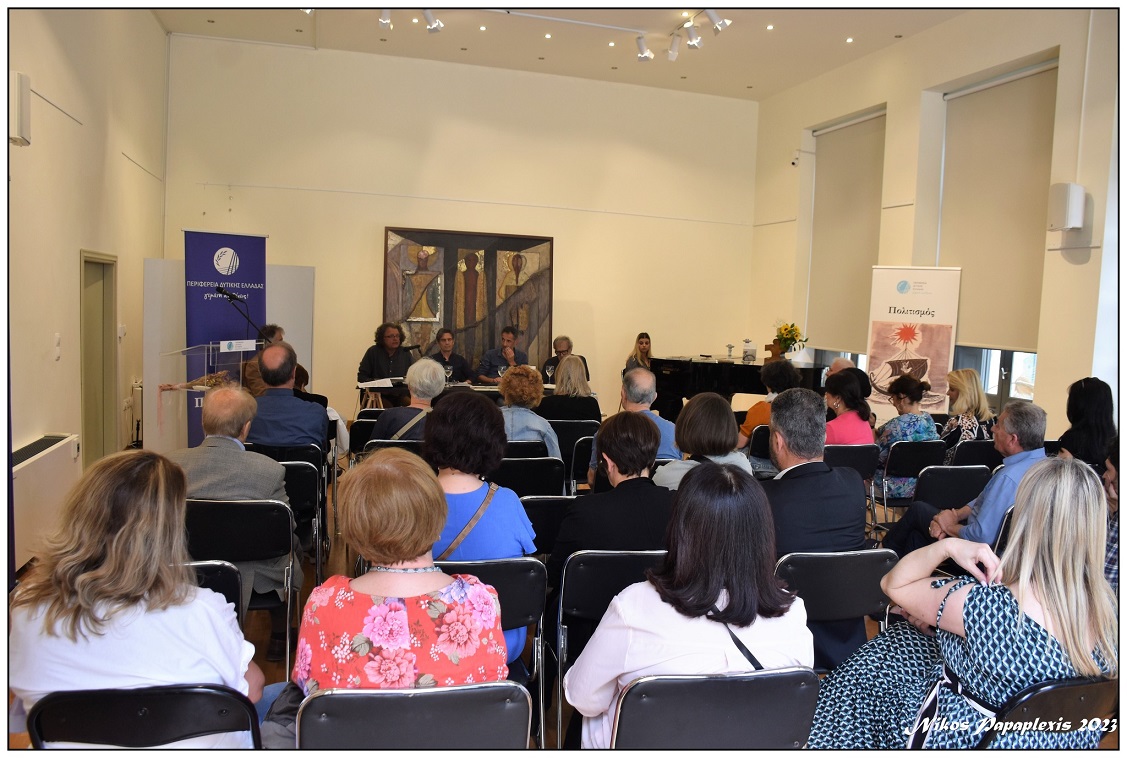 Το πρόγραμμα και τη συζήτηση της εν λόγω εκδήλωσης συντόνισε ο Αριστογιάννης Γαρμπής, Καθηγητής του Πανεπιστημίου Πατρών και μίλησε ο Κώστας Κρεμμύδας, ποιητής και διευθυντής του περιοδικού «Μανδραγόρας», ο Βαγγέλης Πολίτης - Στεργίου, Διδάκτωρ Ανθρωπογεωγραφίας, Ομότιμος Καθηγητής του πρώην Τ.Ε.Ι Δυτικής Ελλάδος και ο Βασίλης Χουλιαράς, συγγραφέας.