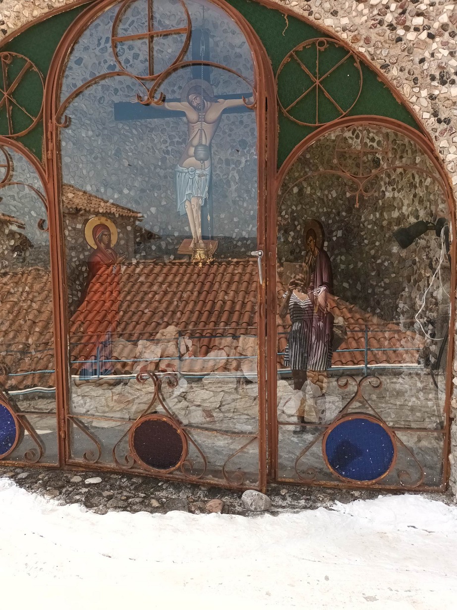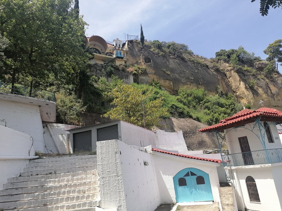 Στέκεται επιβλητική και εντυπωσιάζει με τον όγκο της σαν να είναι κρεμασμένη στο βράχο. Πριν από 800 χρόνια κάτοικοι της περιοχής έβλεπαν τα βράδια σε μια τρύπα του βράχου ένα φως. Κρέμασαν με σχοινί κάποιον, ο οποίος βρήκε την εικόνα της Παναγίας αιωρούμενη.