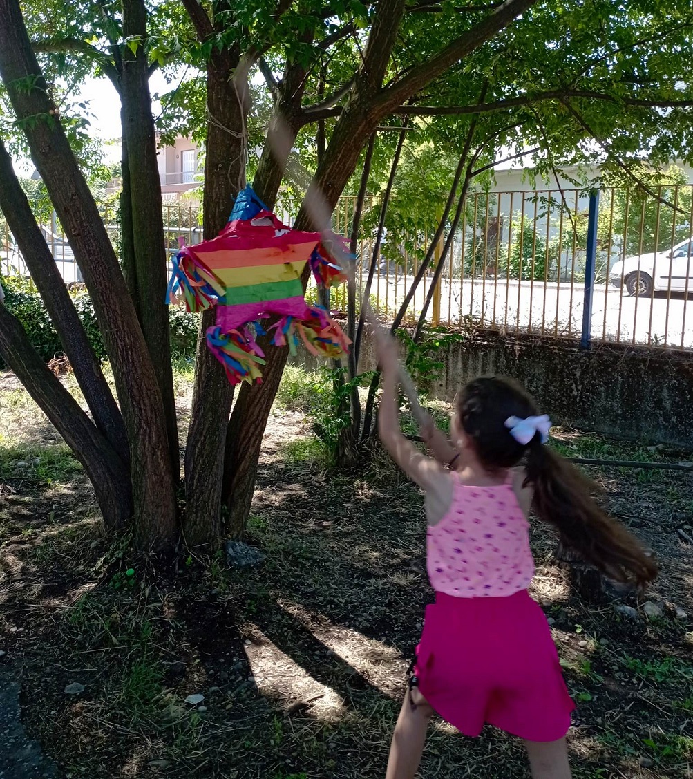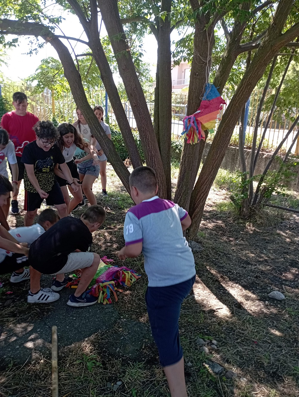 «Κι αυτή η σχολική χρονιά έφτασε στο τέλος της! Παίξαμε διάφορα παιχνίδια: "Ουρίτσες", "Μαντηλάκι", "Τα 2 Βασίλεια", "Μπαλόνια ψηλά", το κυνήγι του Κρυμμένου Θησαυρού" και "Πινιάτα". Στο τέλος δροσιστήκαμε με αναψυκτικό και παγωτό!