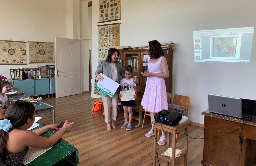 Η Αριάδνη Δάντε απένειμε την αναμνηστική κάρτα μέλους της ομάδας στην Αντιδήμαρχο Πολιτισμού και η μικρή Μαρέβα αφιέρωσε στην κυρία Παπαγεωργίου το εικαστικό της έργο.