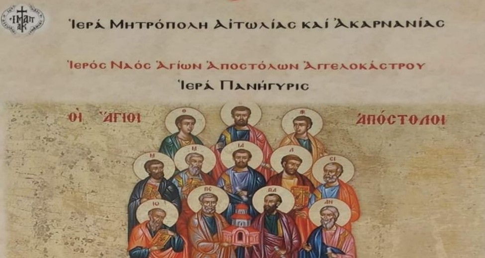 Θρησκευτικές και λατρευτικές εκδηλώσεις για την εορτή των Αγίων Αποστόλων, όπου και πανηγυρίζει ο φερώνυμος Ιερός Ναός, θα πραγματοποιηθούν στο Αγγελόκαστρο στις 29 και 30 Ιουνίου και καλούνται οι πιστοί να προσέλθουν στις ιερές ακολουθίες. Δείτε το πρόγραμμα: