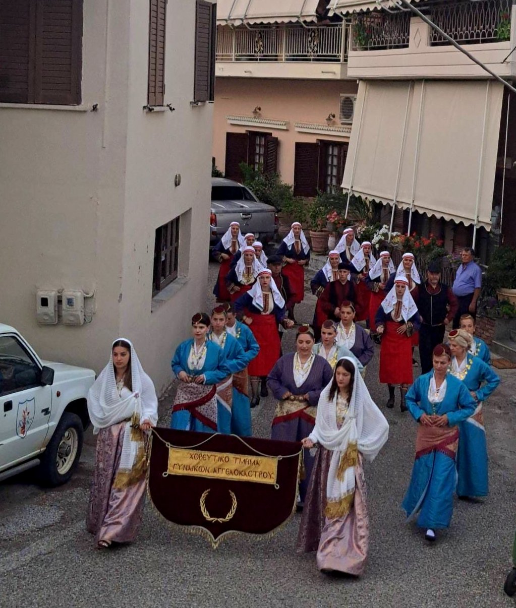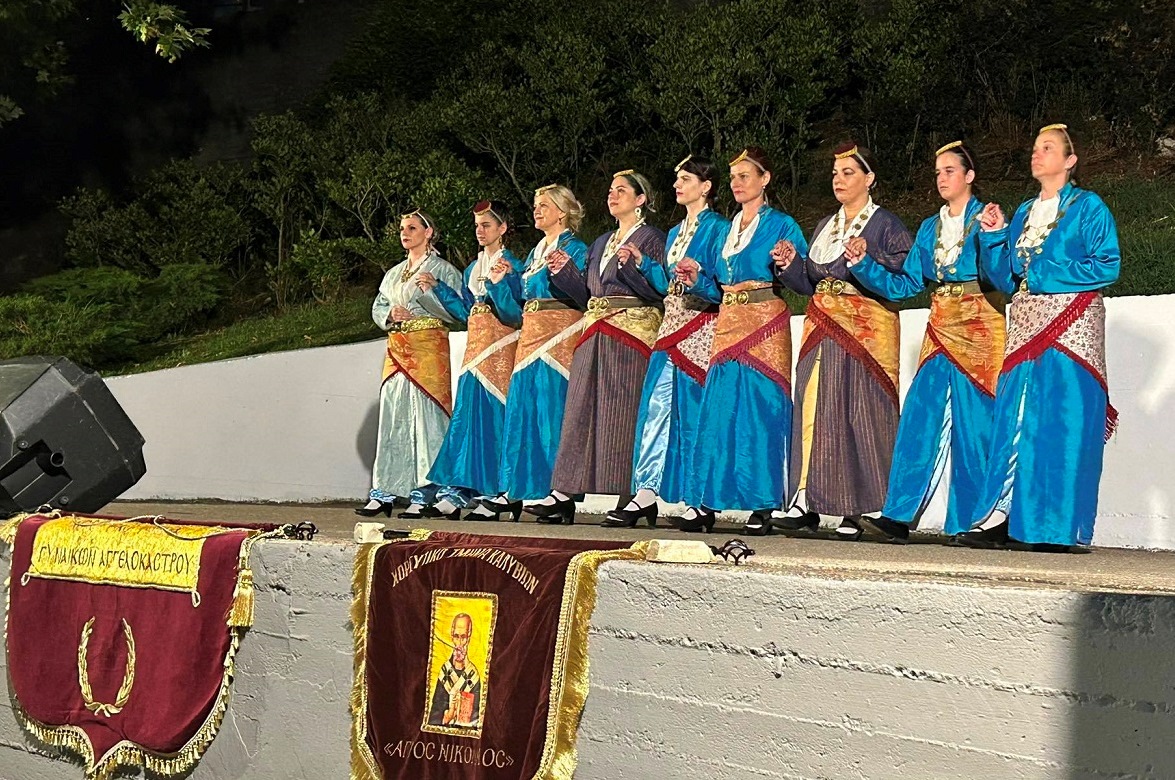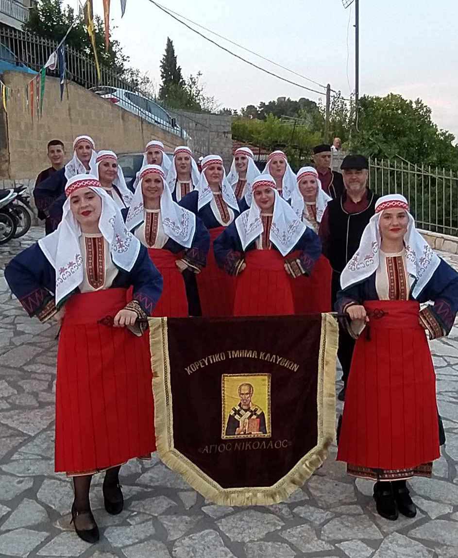 Ακολούθως στη πλατεία του χωριού χόρεψαν παραδοσιακούς χορούς τα Χορευτικά Τμήματα Αγγελοκάστρου και του Χορευτικού Καλυβίων «Άγιος Νικόλαος» του χωριού.