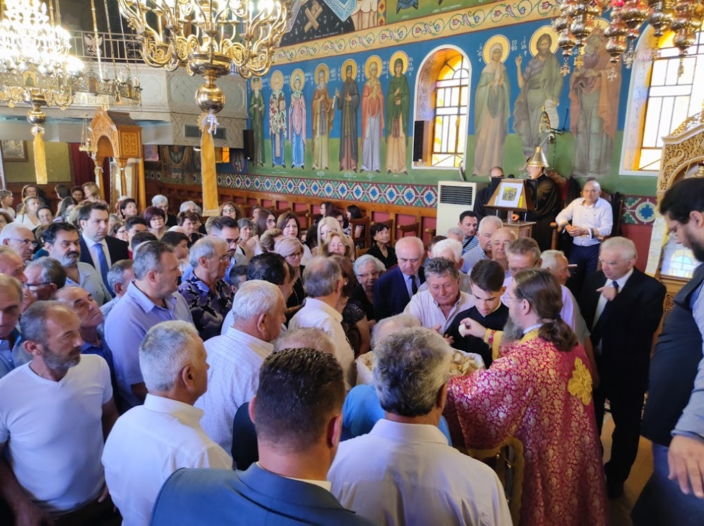 Στην Θεία Λειτουργία συμμετείχε πλήθος πιστών, μεταξύ των οποίων ο Παναγιώτης Κοτούμπας, Πρόεδρος της Τοπικής Κοινότητας Αγγελοκάστρου.