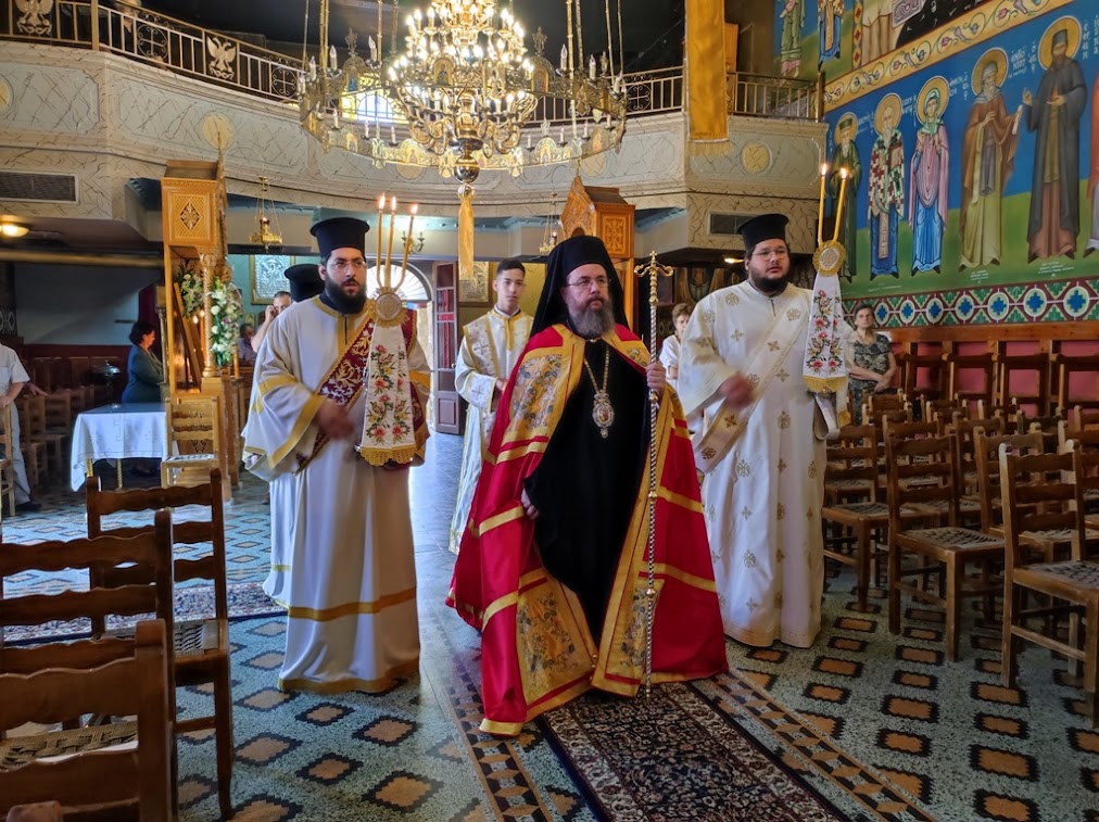 Το απόγευμα της Πέμπτης 30ης Ιουνίου χοροστάτησε στην ακολουθία του πανηγυρικού Εσπερινού. Μετά τον Εσπερινό ακολούθησε η λιτάνευση της ιεράς Εικόνος των Αγίων στους δρόμους του χωριού και στην κεντρική πλατεία τελέσθηκε δέηση προεξάρχοντος του Σεβασμιωτάτου.