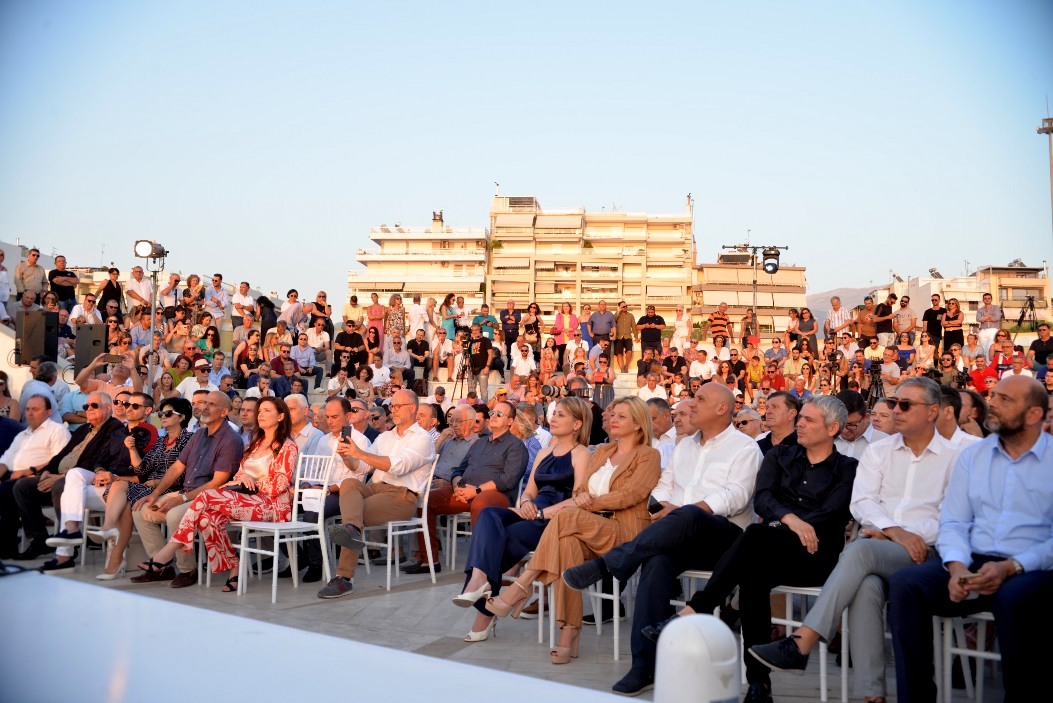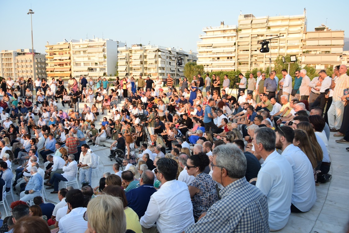 Η εκδήλωση, που παράλληλα ήταν και η εναρκτήρια ενόψει των Περιφερειακών Εκλογών του Οκτωβρίου, πραγματοποιήθηκε στον κατάμεστο χώρο της μαρίνας της Πάτρας, με «μέτωπο» προς τον Πατραϊκό Κόλπο και το Ιόνιο, αλλά και φόντο τον Κορινθιακό Κόλπο, δηλαδή τους ορίζοντες που εμπερικλείουν τη Δυτική Ελλάδα στο σύνολό της.