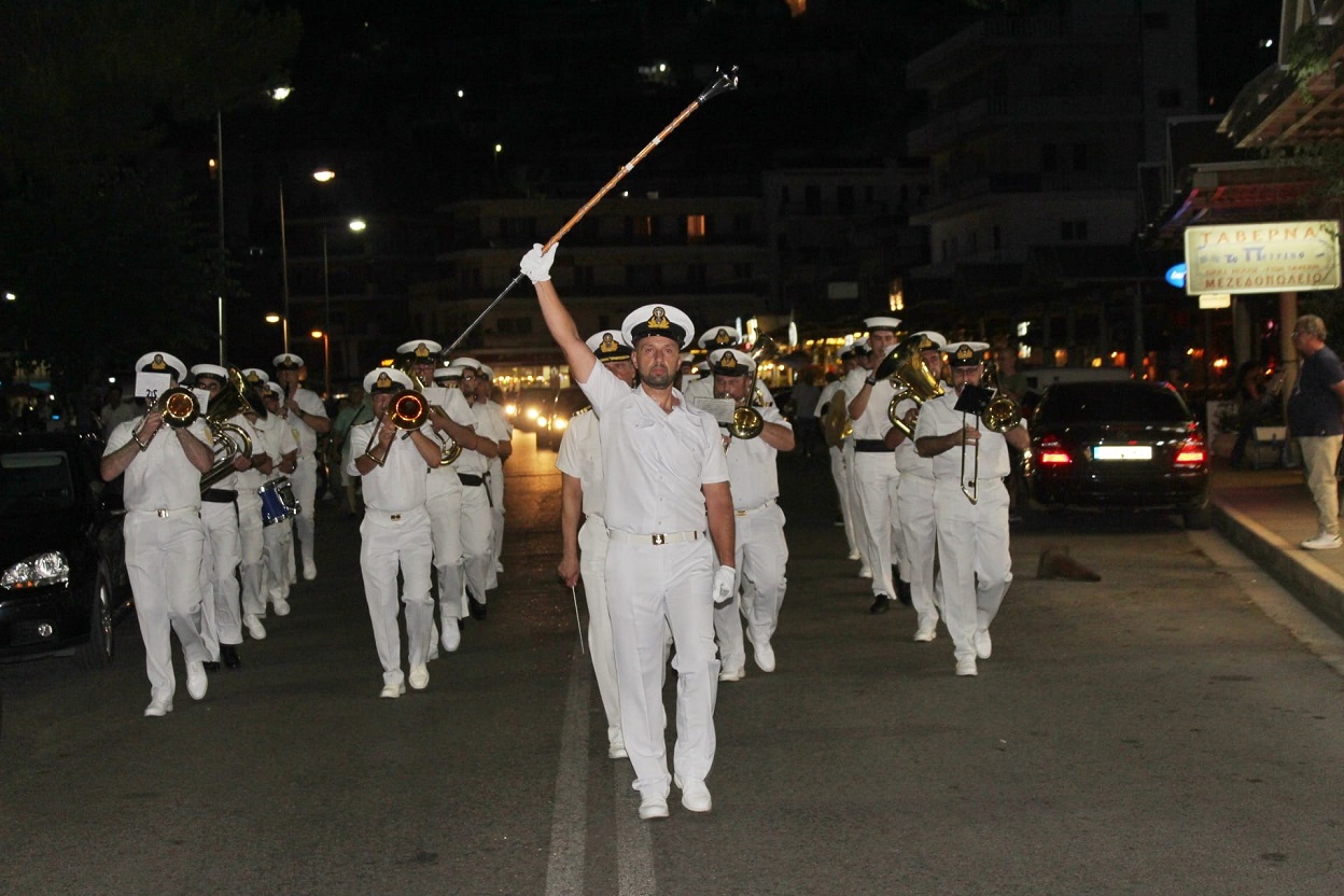 Στη συνέχεια, το λόγο είχε η τιμώμενη Φιλαρμονική του Φεστιβάλ, η μπάντα του Πολεμικού Ναυτικού, με Αρχιμουσικό τον Πλωτάρχη Αντώνη Καραγουδάκη, η οποία παρουσίασε ένα ποικίλο και εντυπωσιακό ρεπερτόριο από έργα γνωστών Ελλήνων συνθετών, ενθουσιάζοντας με τις ικανότητές των μελών της στη μουσική και το τραγούδι αλλά και με το μοναδικό και μεταδοτικό τους μπρίο.