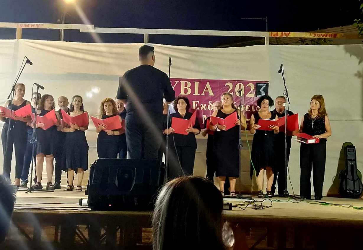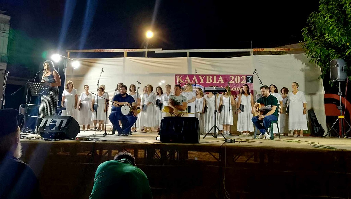 Πραγματοποιήθηκε σήμερα στην πλατεία Καλυβίων Αγρινίου, παρουσία πολλών θεατών, η Χορωδιακή Μουσική παράσταση που ήταν ενταγμένη στα πλαίσια των εκδηλώσεων για την 79η επέτειο της εκτέλεσης από τους Γερμανούς των 59 Ελλήνων πατριωτών το 1944, στα Καλύβια.