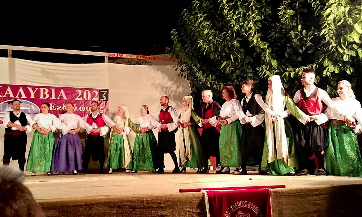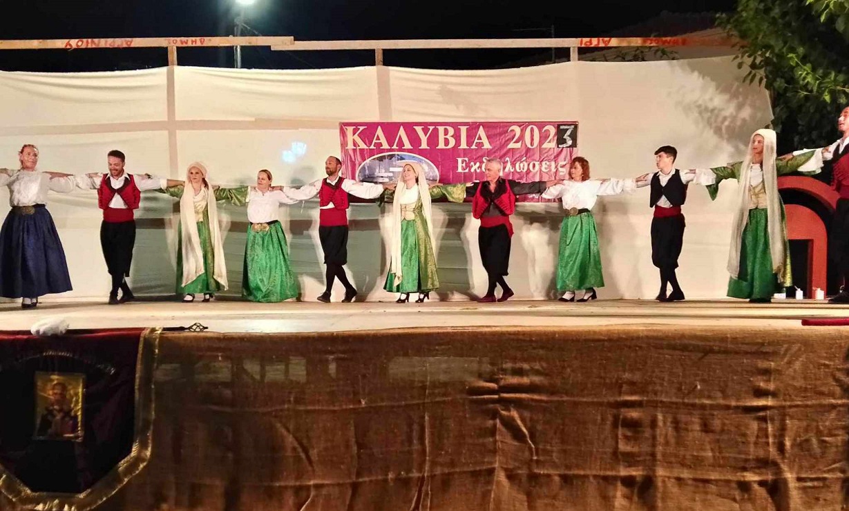 Πραγματοποιήθηκε σήμερα στην πλατεία Καλυβίων, παρουσία πολλών θεατών, παράσταση χορευτικών παραδοσιακών συγκροτημάτων, που ήταν ενταγμένη στα πλαίσια των εκδηλώσεων για τους 59 εκτελεσθέντες Έλληνες πατριώτες το 1944, στα Καλύβια.