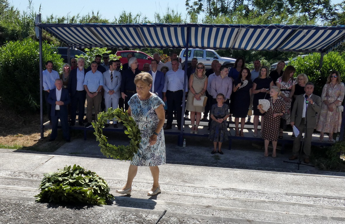 Δίπλα στο βωμό, κυρίες με παραδοσιακές φορεσιές από το Χορευτικό τμήμα Καλυβίων, τίμησαν την σημερινή επέτειο. Κατόπιν έγινε η κατάθεση στεφάνων από τις επίσημες αρχές, εκπροσώπους φορέων, συλλόγων και συγγενών των θυμάτων, τον Δήμαρχο Αγρινίου Γιώργο Παπαναστασίου, τον πρόεδρο της Κ. Καλυβίων Δ. Αναστασίου, τον εκπρ. της δημοτικής παράταξης «Αγρίνιο Μπορείς» κ. Μάκη Μπελεβωνη, τον πρώην Δήμαρχο Δ.Τραπεζιώτη, τον επικεφαλή της «Συμμαχίας Πολιτών» Γ. Καραμητσόπουλο, τον Δημ. Σύμβουλο Π. Γιαννιώτη, τον Αστυνομικό Διευθυντή Ακαρνανίας, Δ. Γαλαζούλα , τον Πρόεδρο του Συνδέσμου Αποστράτων Δ.Τσούνη, από τον εκπρόσωπο της Ν.Ε. του ΣΥΡΙΖΑ, την Πρόεδρο του Συλλόγου Γυναικών Καλυβίων, Μ. Ζαπαντιώτη, τον εκπρόσωπο της Χορωδίας Γυναικών Καλυβίων, Χοράρχη Ν. Στρατόπουλο και την Πρόεδρο του Συλλόγου Γυναικών Σταμνάς Γ. Κορδόση.