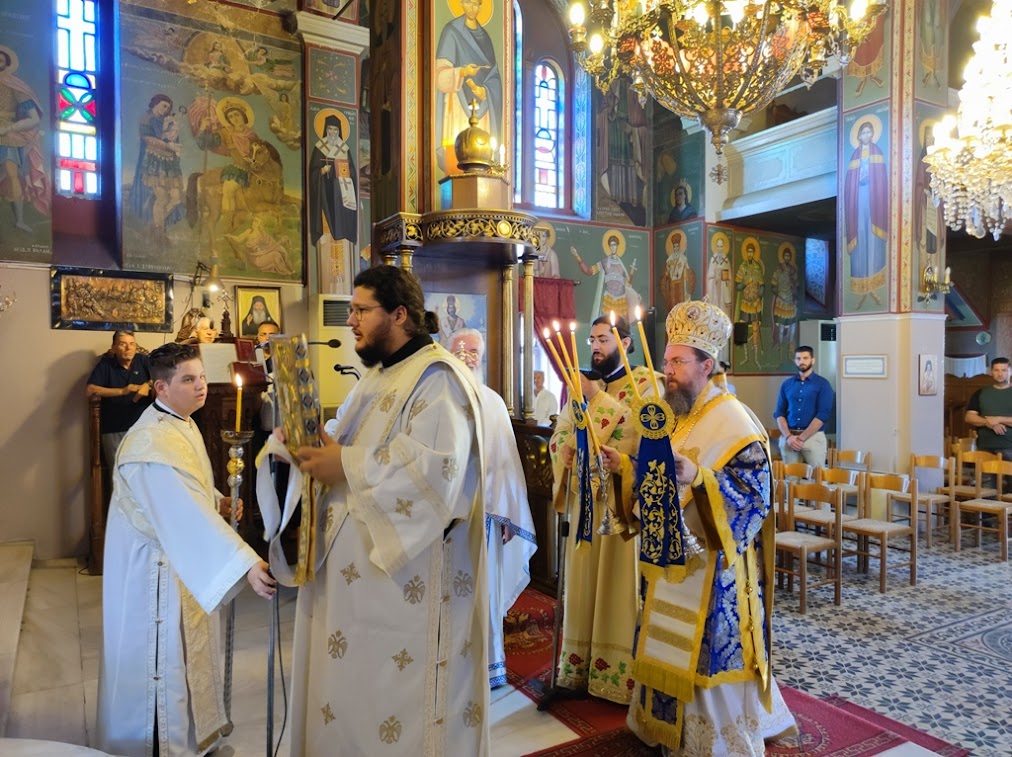 Στον Ιερό Ναό Αγίου Νικολάου στα Καλύβια Αιτωλοακαρνανίας χοροστάτησε στην Ακολουθία του Όρθρου και προεξήρχε στη Θεία Λειτουργία, την Κυριακή 30 Ιουλίου 2023, ο Σεβασμιώτατος Μητροπολίτης Αιτωλίας και Ακαρνανίας κ. Δαμασκηνός.