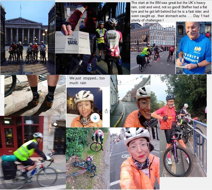 Με κίνητρο την περιπέτεια και το ταξίδι, οι συμμετέχοντες ποδηλάτες από όλον τον κόσμο, στο «Λονδίνο-Αθήνα σε 2 τροχούς – Φέρτε τα πίσω» καλούνται να ακολουθήσουν όποια διαδρομή επιθυμούν περνώντας υποχρεωτικά από 5 σημεία ελέγχου (Μονς, Μόναχο, Βουδαπέστη, Καστοριά, Τρίκαλα). Ανάμεσα στους συμμετέχοντες, o Christopher Ross Bennett (διευθυντής της World Bank). Την εκκίνηση στο Βρετανικό Μουσείο έδωσαν χθες μέλη της Βρετανικής Επιτροπής για την Επανένωση των Γλυπτών του Παρθενώνα (BCRPM) και ο Δρ. Κρις Στόκντεϊλ, ο οποίος έκανε τη διαδρομή με ποδήλατο μόνος του το 2005 και η Μάρλεν Γκόντγουιν.
