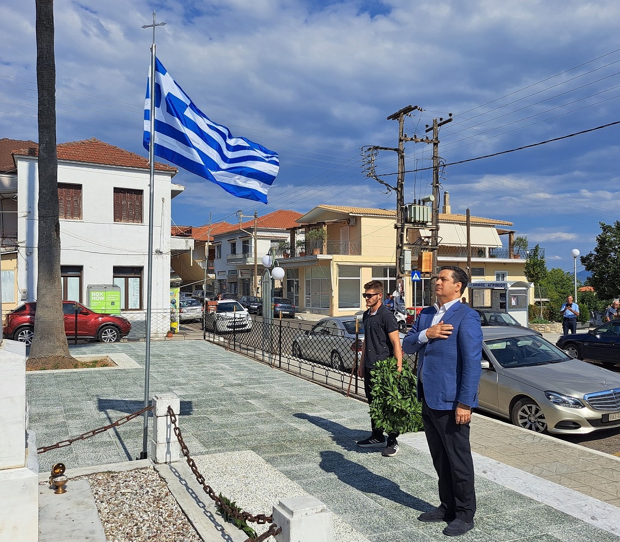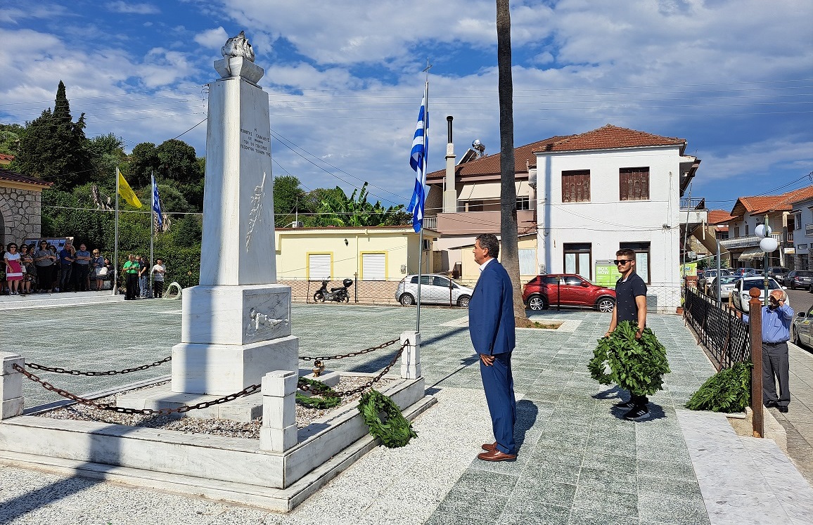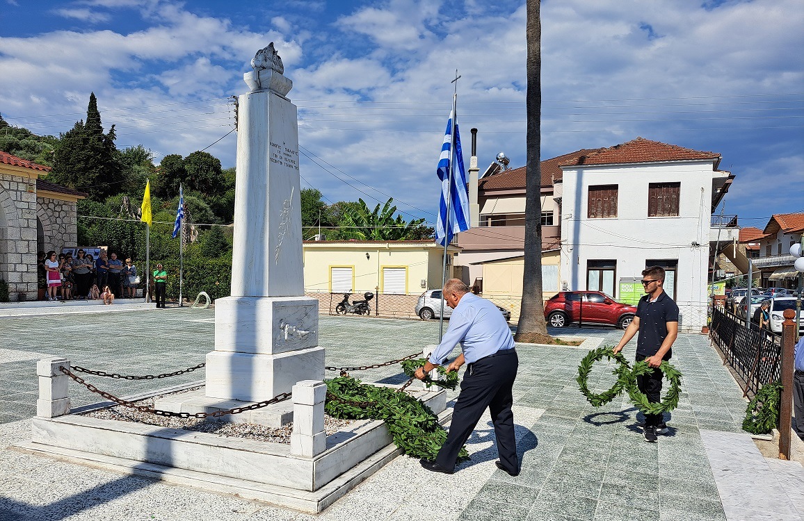 Τον πανηγυρικό εκφώνησε ο Πρόεδρος του Πολιτιστικού Συλλόγου Καζανέικων κ. Παναγιώτης Καζανάς. Αμέσως μετά έγινε η κατάθεση στεφάνων στο Μνημείο των Πεσόντων από τον Δήμαρχο Αγρινίου, Γιώργο Παπαναστασίου, τον Αντιπεριφερειάρχη Λάμπρο Δημητρογιάνη, τον Πρόεδρο της Κοινότητας Γαβαλούς, Ανδρέα Γούλα, τον πρώην Δήμαρχο Δημήτρη Τραπεζιώτη, τον Διοικητή του Πυροσβεστικού Σταθμού Γαβαλούς, Στάθη Λαγό, τον Πρόεδρο Κάτω Δαφνιά, Π.Μακρυγιάννη, τον Πρόεδρο Κοινότητας Λιθοβουνίου, Κ.Αλεξανδρή, τον Πρόεδρο Ματαράγκας, Γ.Αγγέλη, τον Πρόεδρο Τριχωνίου, Α.Γκολφίνο, τον Πρόεδρο της Ένωσης Αποστράτων Αξιωματικών, Π. Τσαντζαλο, εκπρ. Συνδέσμου Αποστράτων Σωμάτων Ασφαλείας Αγρινίου, Κ.Νταβαρίνο , εκπρόσωπο Εθνικής Αντίστασης, Ν. Τσάτσο, τον Πρόεδρο του Συλλόγου Γαβαλιωτών Αθήνας, Άρη Σουφλή, τον Πρόεδρο του Πολιτιστικού Συλλόγου Καζανέικων, Παναγιώτη Καζανά, εκπρόσωπο του ΤΟΕΒ Παμφίας, κ. Γιαννέλο, τον εκπρόσωπο του Συλλόγου Καψοραχιωτών, Κ. Κουμπουλή καθώς και εκπροσώπους των οικογενειών Δημητρέλη, Τραγουλιά και Σιαμπαλή.