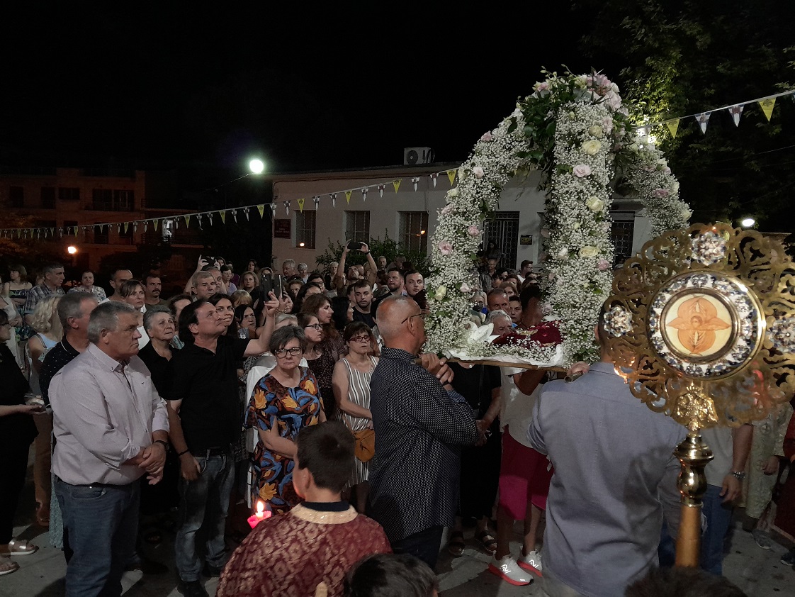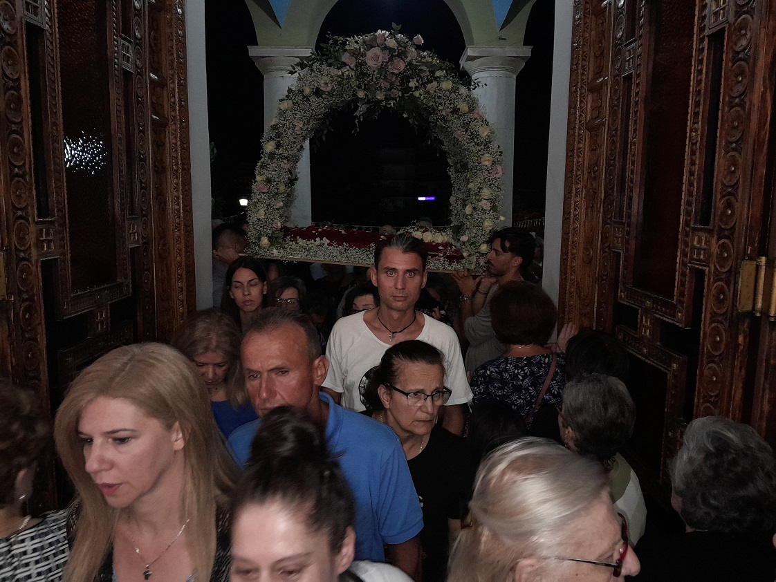 Στη συνέχεια πραγματοποιήθηκε περιφορά του Επιταφίου της Παναγίας πέριξ του Ιερού Ναού, ενώ συνοδεύονταν από εκατοντάδες πιστούς που συνέρρευσαν στην ιερά τελετή. Κατόπιν με ευλάβεια οι πιστοί πέρασαν κάτω από τον Επιτάφιο που ήταν στην είσοδο του ναού.