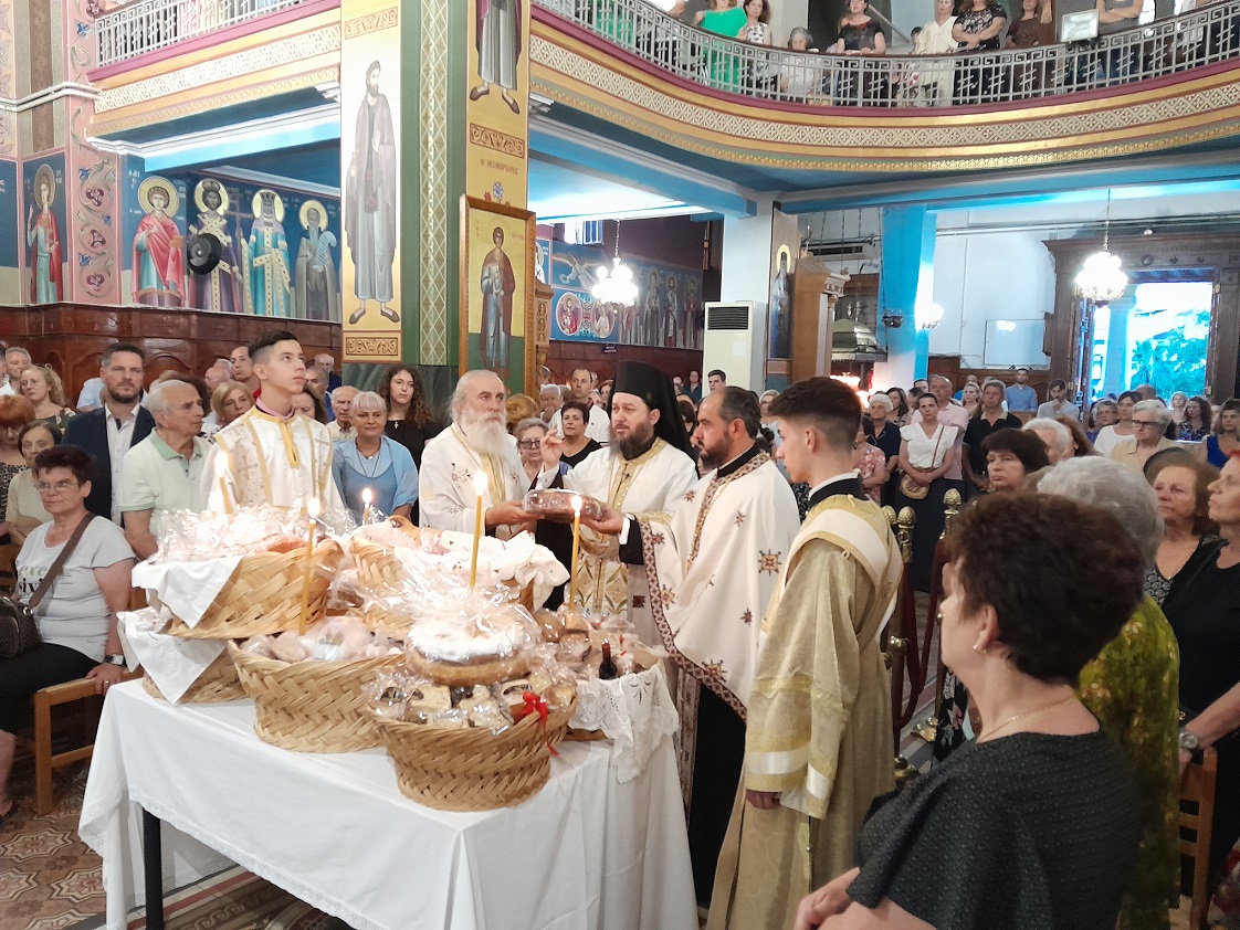 Παρουσία πλήθους πιστών σήμερα το απόγευμα Δευτέρα 14 Αυγούστου, παραμονή της Κοιμήσεως της Θεοτόκου, στον Ιερό Ναό Αγίας Τριάδος Αγρινίου τελέσθηκε Μέγας Πανηγυρικός Εσπερινός μετ’ αρτοκλασίας, και εψάλλησαν τα εγκώμια της Παναγίας, από τους ιερείς και τους ιεροψάλτες του ναού.
