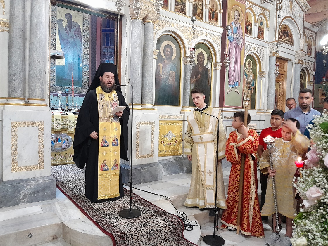 Την ιερή ακολουθία τέλεσαν ο Αρχιμανδρίτης, Νεκτάριος Τριάντης, συνεπικουρούμενος από τον Πρωτοπρεσβύτερο, π. Κωνσταντίνο Σουλιώτη και τον εφημέριο π. Νεκτάριο Καττή.