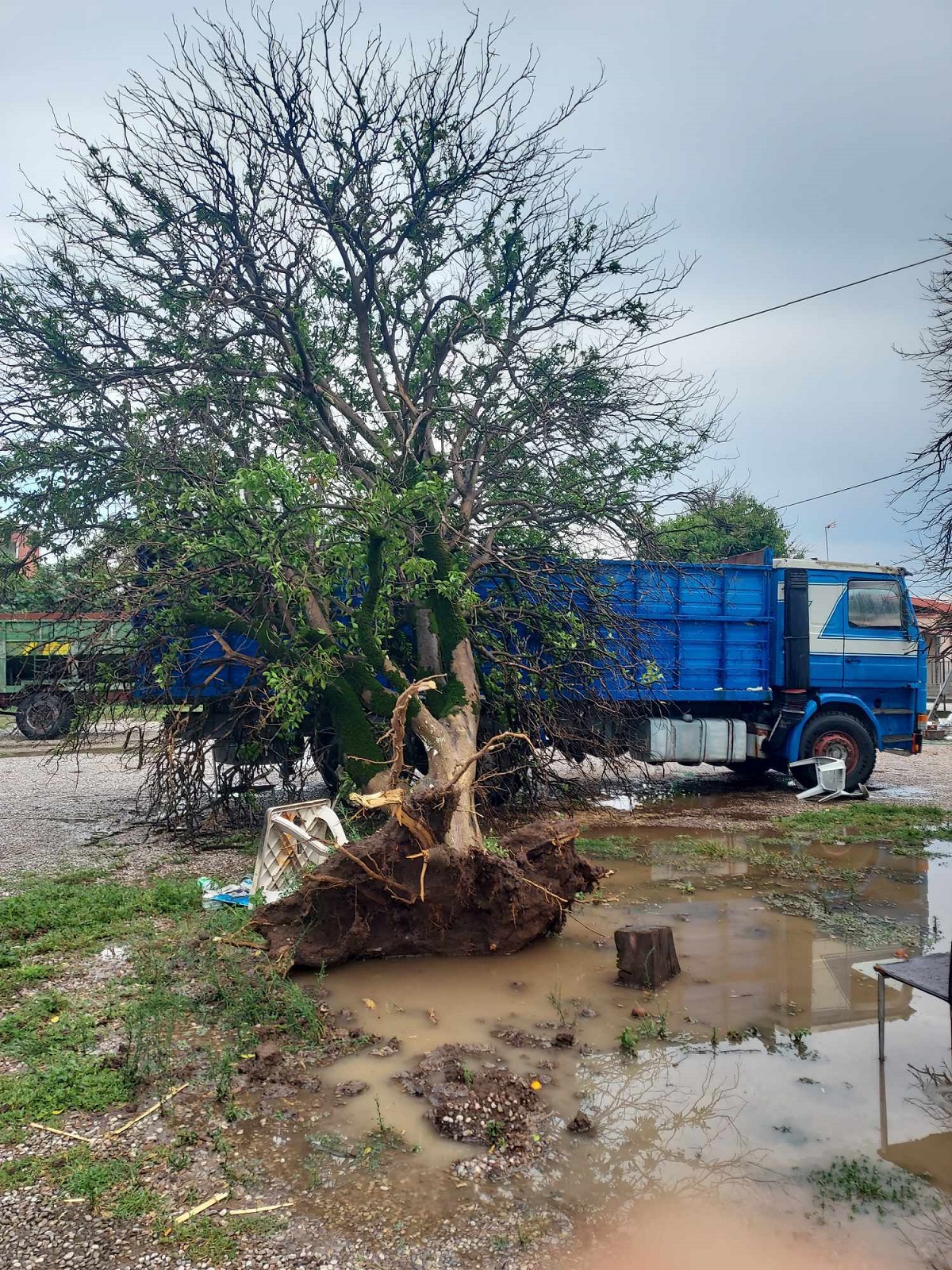 Στο στόχαστρο των έντονων καιρικών φαινομένων έχει μπει η περιοχή των Καλυβίων το τελευταίο τριήμερο. Σήμερα Σάββατο, τις απογευματινές ώρες, νέο μπουρίνι με ισχυρούς ανέμους και χαλαζόπτωση έπληξε την περιοχή, προκαλώντας νέες ζημιές σε περιβόλια και καλλιέργειες. Ήταν δε τέτοια η ένταση των ανέμων που ξεριζώθηκαν και δένδρα, όπως θα δείτε στις φωτογραφίες.