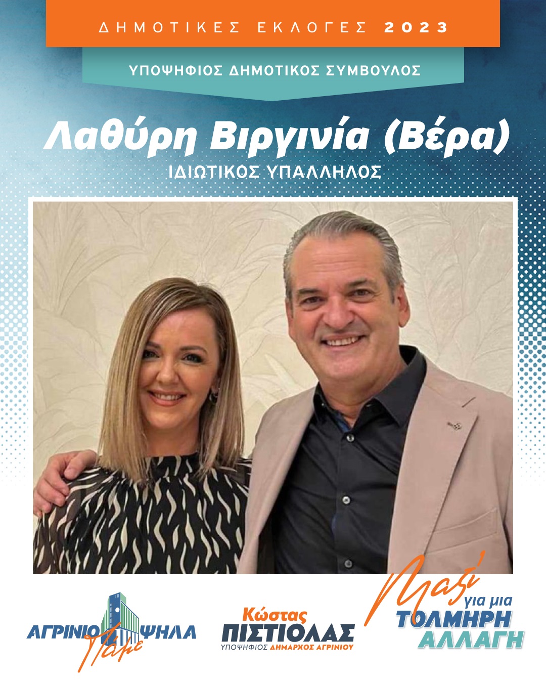Ο κ. Πιστιόλας ανέφερε συγκεκριμένα: «Καλωσορίζουμε την Βιργινία (Βέρα) Λαθύρη στην κοινή μας προσπάθεια για την τολμηρή αλλαγή στο Δήμο Αγρινίου.