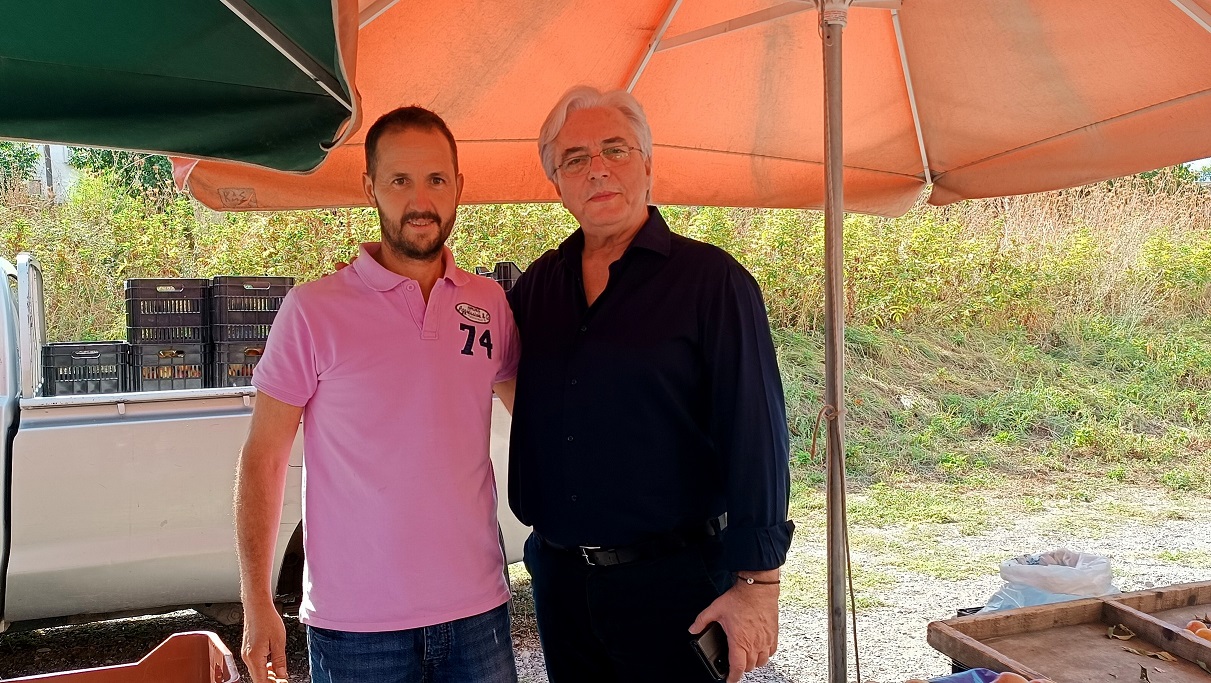 Ο Δημ. Τραπεζιώτης μαζί με τον Ηλία Ι. Δρακόπουλο, υποψήφιο Δημοτικό Σύμβουλο και παραγωγό αγροτικών προϊόντων από τα Καλύβια