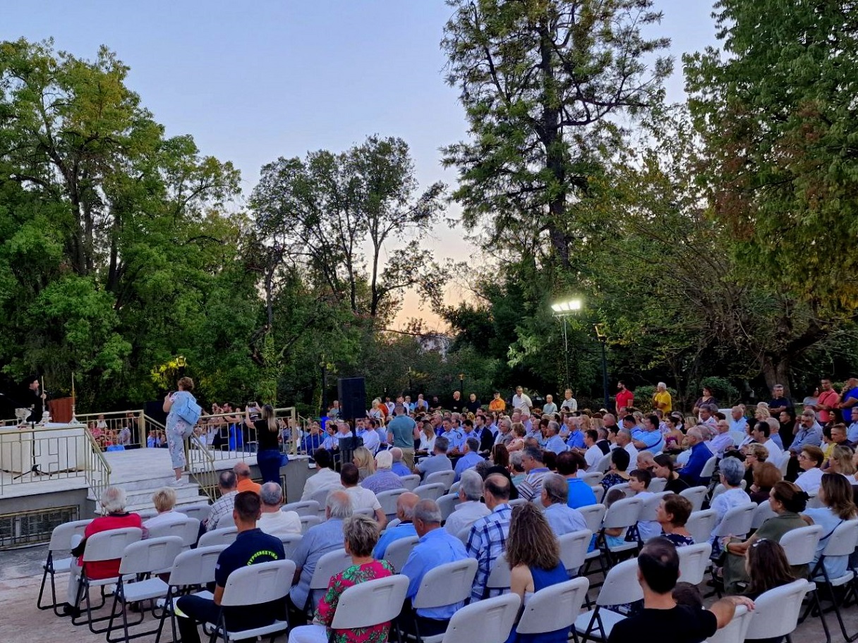 Ο κ. Δαμασκηνός ανέφερε σε σύντομο χαιρετισμό του:«Θέλω να εκφράσω τη χαρά μου γιατί σήμερα για πρώτη φορά εισήλθα σε αυτόν τον όμορφο χώρο της πόλης μας, έναν χώρο που μας συνδέει με την ιστορία με το φυσικό περιβάλλον αλλά και μας προκαλεί να τελειώσουμε ελπιδοφόρα το μέλλον. Συγκινήθηκα ακούγοντας την ιστορία του χώρου και των μεγίστων ευεργετών της πόλης, συγκινήθηκα όμως γιατί διαπίστωσα ότι στο κέντρο αυτού του χώρου πρασίνου βρίσκεται ο ιερός ναός της Μεταμορφώσεως του Σωτήρος και ήταν επιθυμία των ευεργετών να ανεγερθεί αυτός ο ιερός ναός.