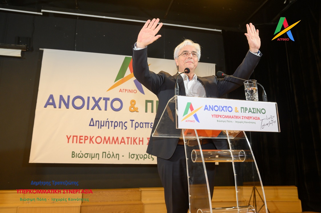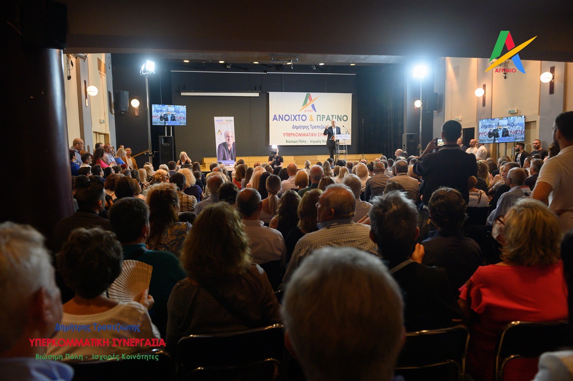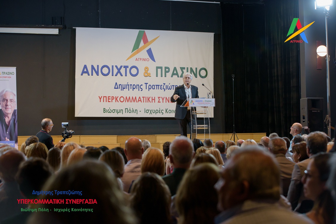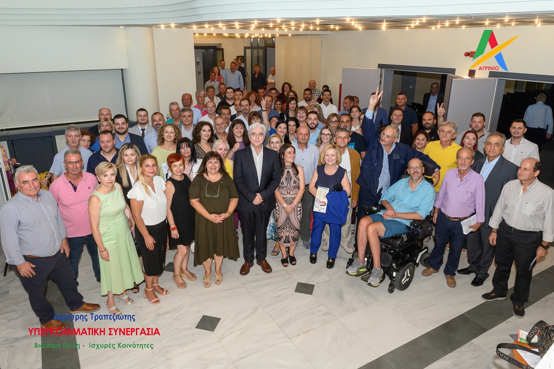 Με απόλυτη επιτυχία και αθρόα προσέλευση κόσμου πραγματοποιήθηκε την Παρασκευή 15 Σεπτεμβρίου στο Παπαστράτειο Μέγαρο Αγρινίου, η παρουσίαση του ψηφοδελτίου του υποψήφιου Δημάρχου Αγρινίου κ. Δημήτρη Τραπεζιώτη.