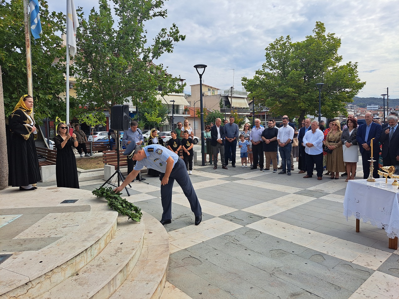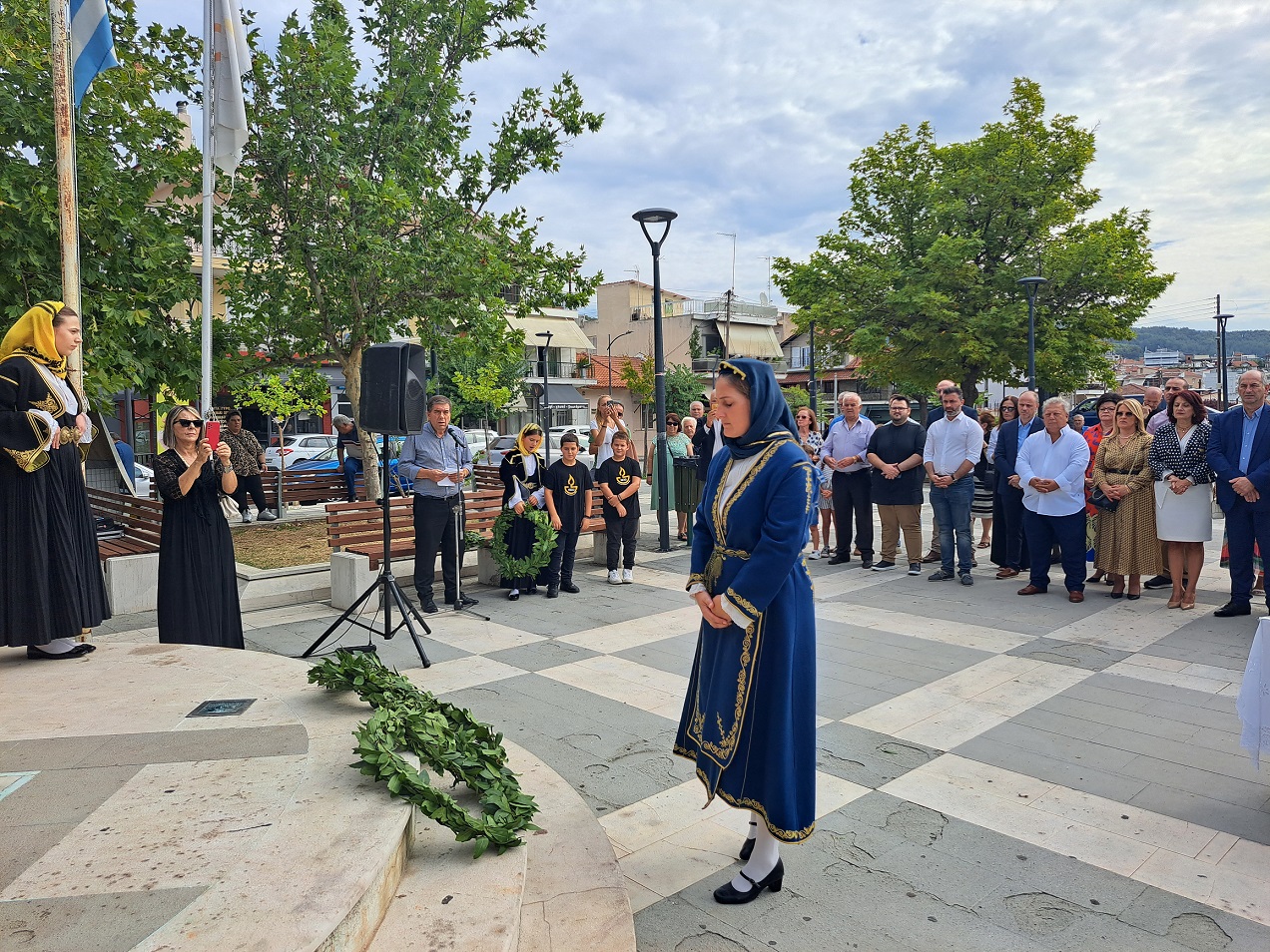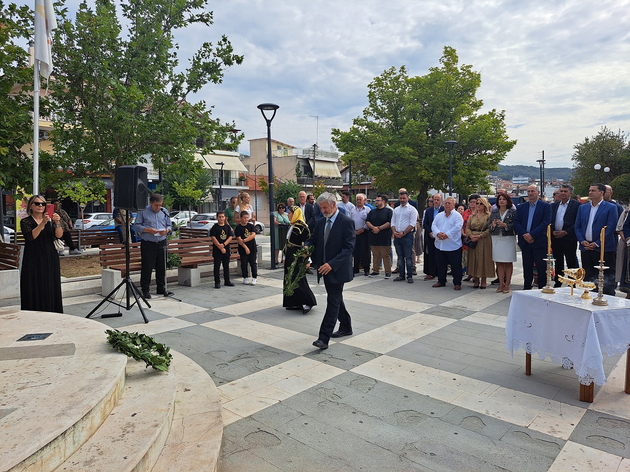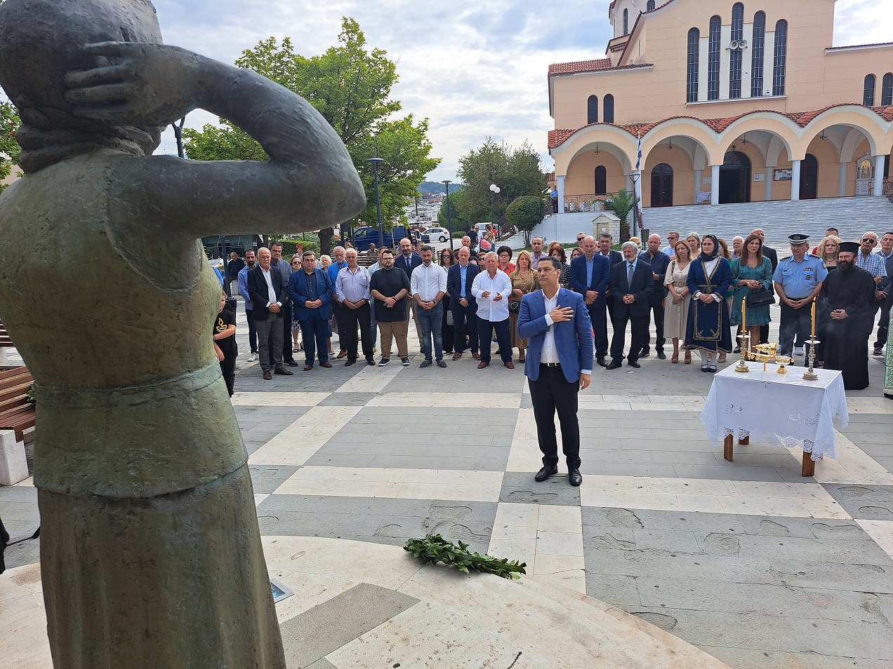 Με ιδιαίτερη λαμπρότητα τελέστηκε στον Ιερό Ναό Αγίων Κωνσταντίνου και Ελένης επιμνημόσυνη δέηση στο Μνημείο Μικρασιατικής Καταστροφής που βρίσκεται στον αύλειο χώρο του Ιερού Ναού. Ακολούθησε κατάθεση στεφάνων.