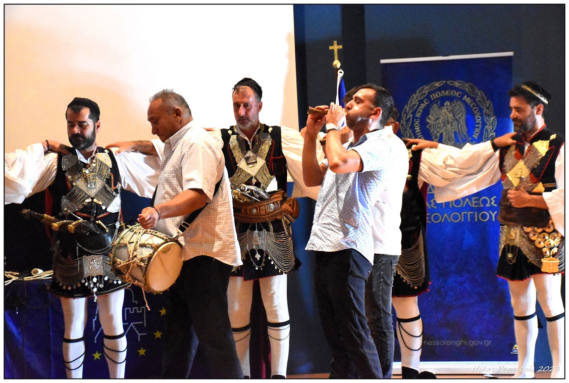 Την εκδήλωση άνοιξε με χαιρετισμό ο Δήμαρχος Δήμου Ι.Π. Μεσολογγίου Κώστας Λύρος ο οποίος τόνισε μεταξύ άλλων: «Το Μεσολόγγι Πόλη των τεχνών και των γραμμάτων, κέντρο του ιδιαίτερου πολιτισμού της Λιμνοθάλασσας, τόπος ορόσημο, σύμβολο και ιδέα, διαθέτει πλούσια παράδοση και κληρονομία που ξεπερνά τα εθνικά όρια. Σε αυτό τον πλούτο συγκαταλέγεται και η δράση των ενεργών συλλογών και φορέων του Δήμου μας που λειτουργούν ως θεματοφυλακές της ιστορίας και του πολιτισμού μας».