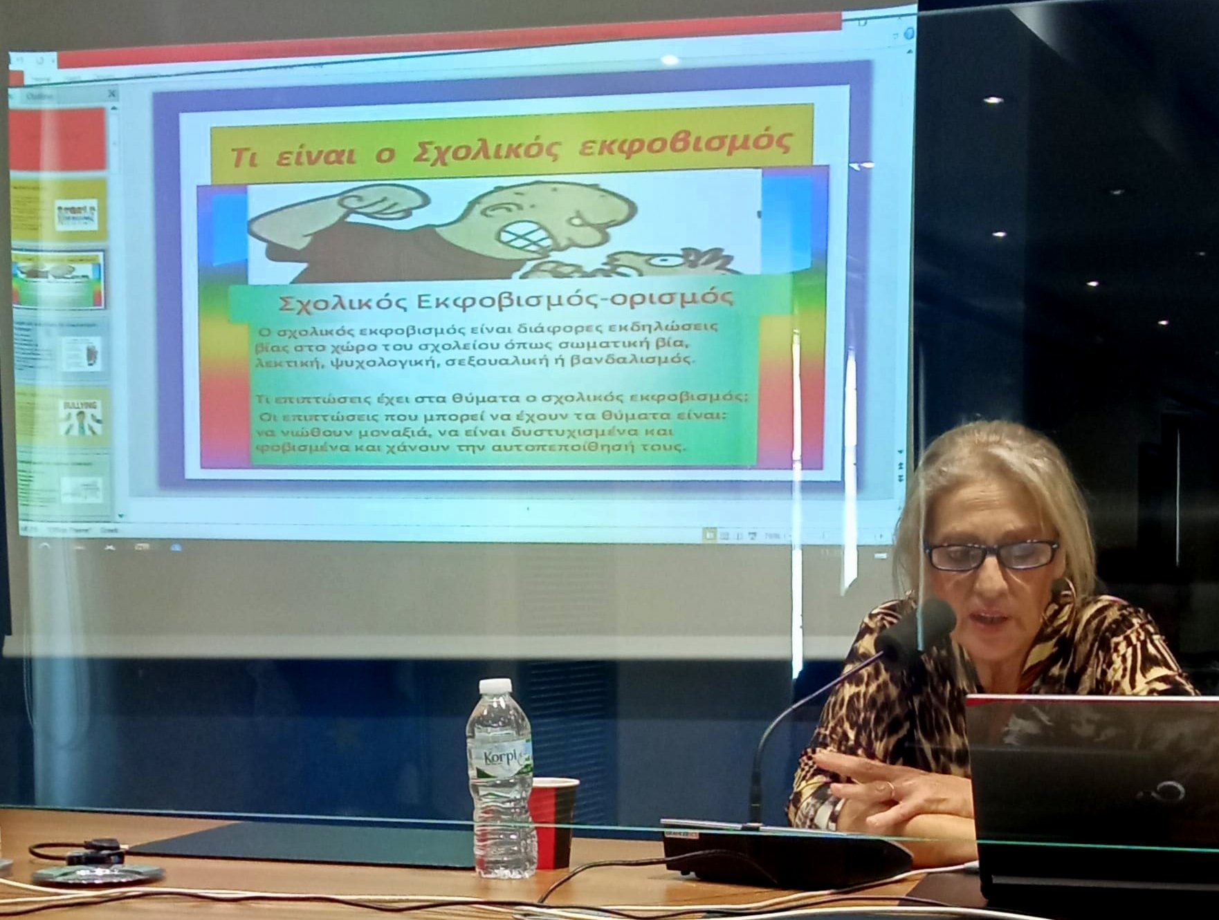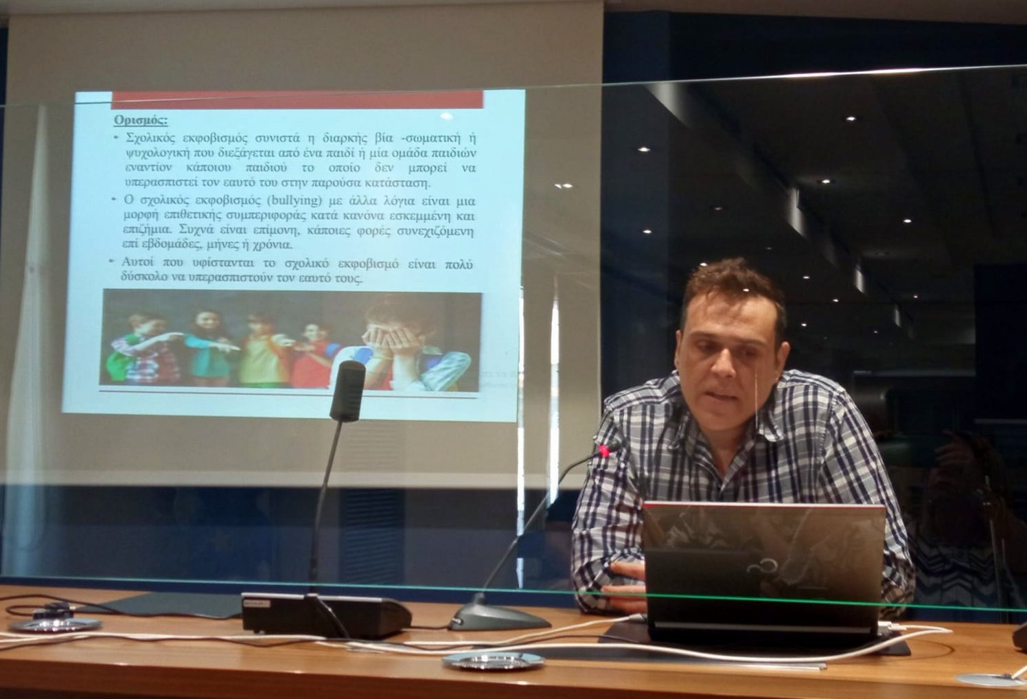 - Εισηγήσεις από τους Χρήστο Μαγειρούδη, Σχολικό Ψυχολόγο και Ελισάβετ Κρητικού, Κλινική Ψυχολόγο, για την παρουσίαση του ενδιαφέροντος θέματος για τον Σχολικό Εκφοβισμό (bullying).