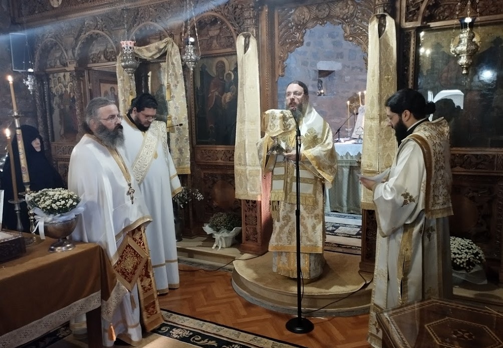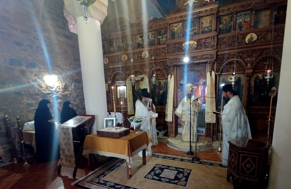 Καταλήγοντας, ευχαρίστησε την Αδελφότητα της Ιεράς Μονής, τους ιεροψάλτες και τους πιστούς που συμμετείχαν στην Θεία Λειτουργία και τέλεσε το Ιερό Μνημόσυνο, ευχόμενος για την ανάπαυση των ψυχών τους.